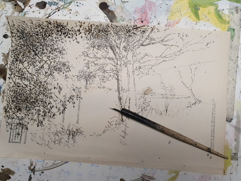 Hier nun eine zweite, etwas kleinere Zeichnung vom Prerower Strom am Zugang zur Seebrücke. Das erste Motiv, im deutlich größeren Format, findet sich gleich links am Übergang Richtung Strand. Dieses zweite nun nur einige Meter weiter und offenbart den Blick nach rechts über den Strom. Nur die Ente Wanda wollte dieses Mal nicht mit aufs Bild.