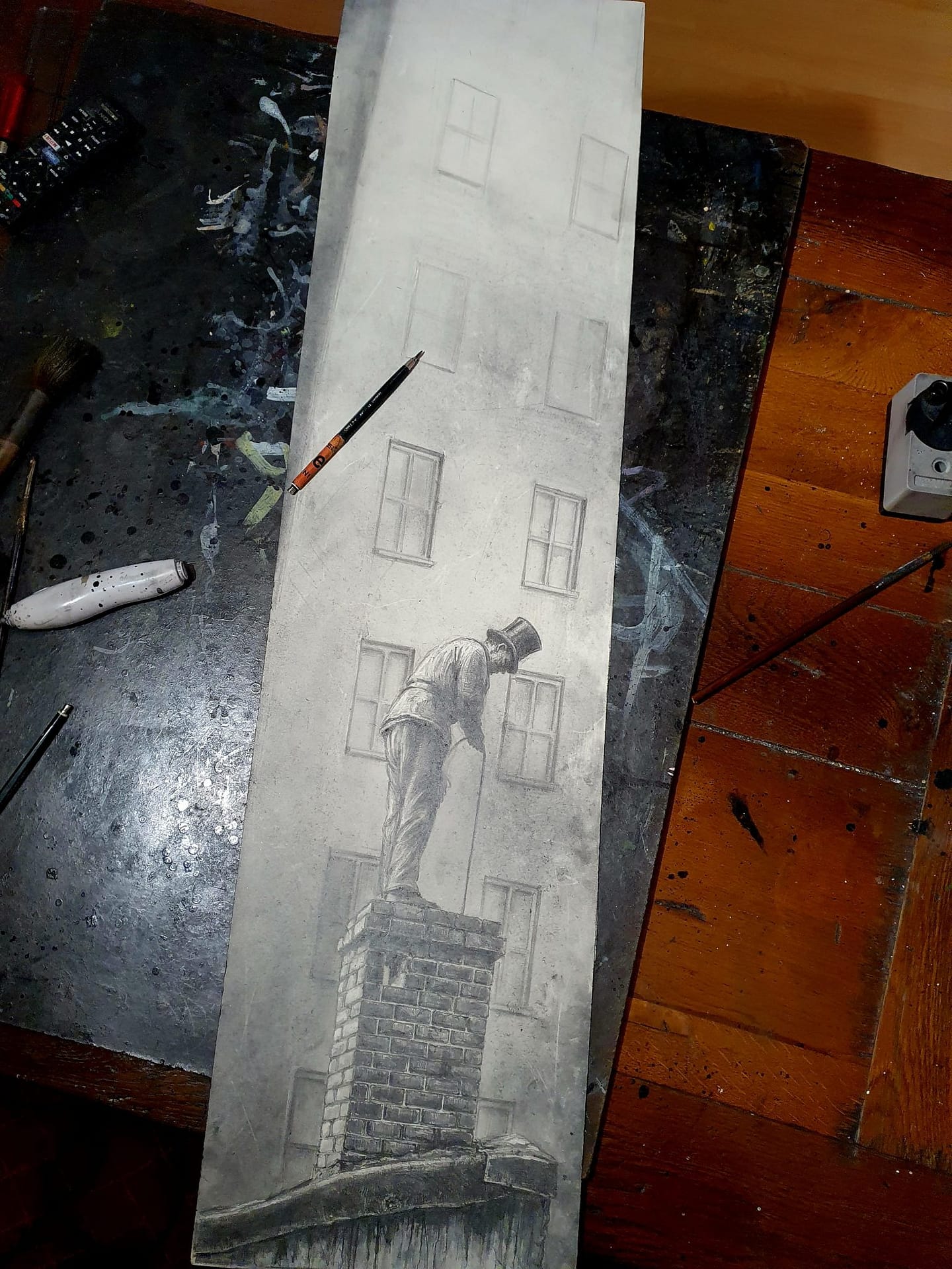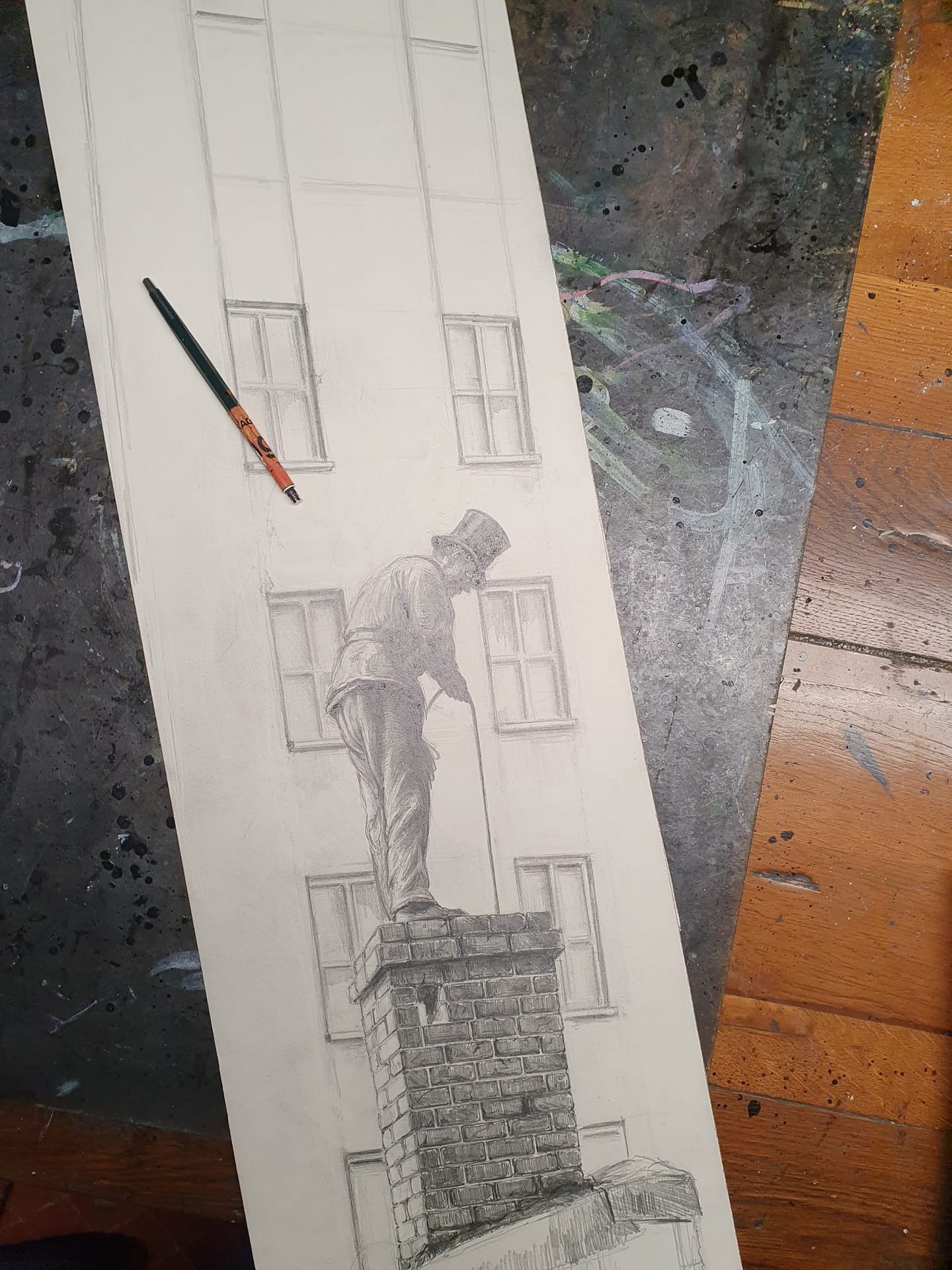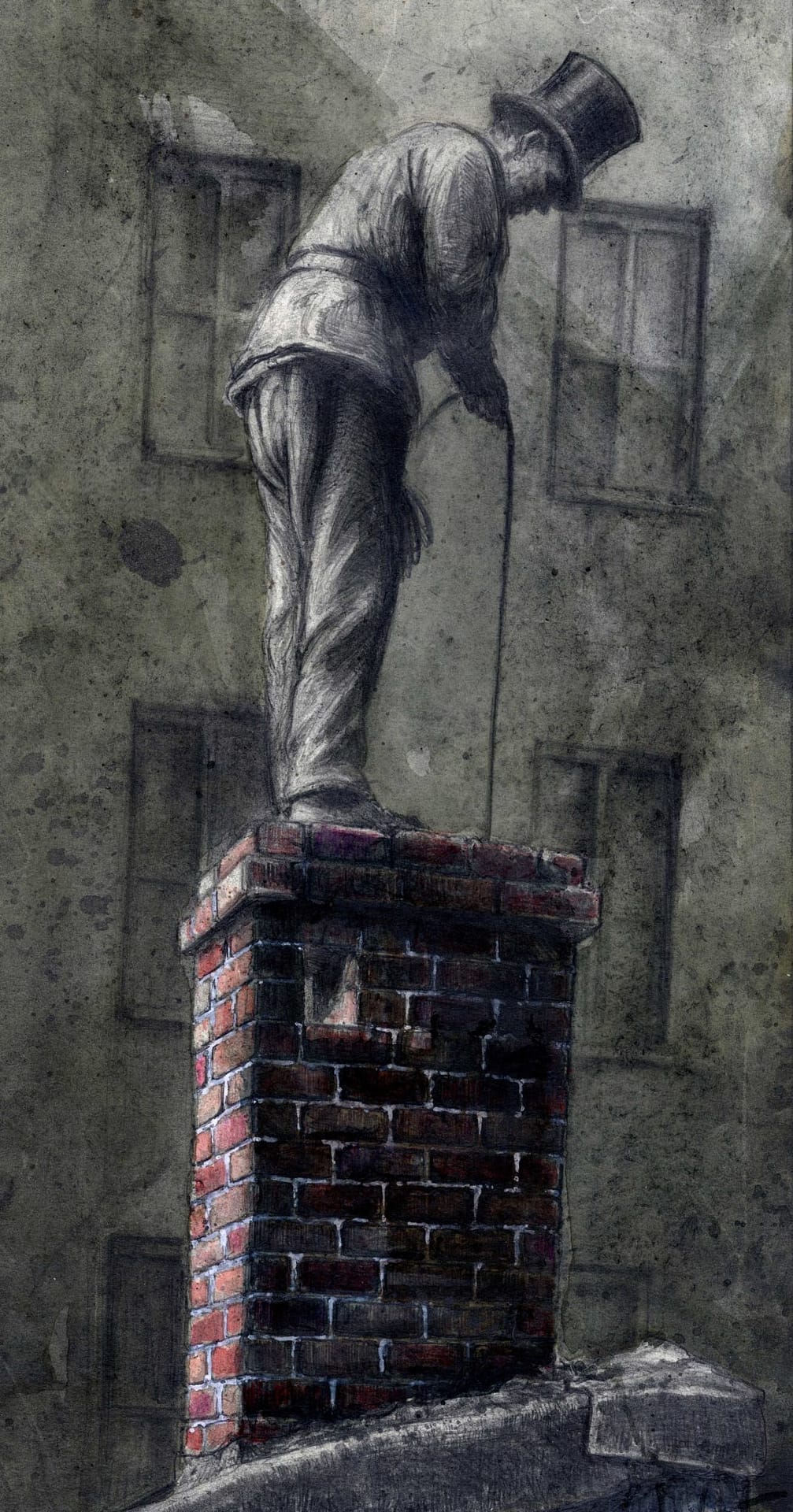 Nur sehr selten lasse ich mich über die Qualität einzelner Arbeiten öffentlich aus, überlasse es lieber dem Betrachter selbst zu entscheiden, was ihm wirklich nahe geht, und was weniger. In diesem Fall muss ich aber dann doch einmal eine Ausnahme machen und gestehe gerne, dass nun gerade dieses Blatt es wohl in den engeren, den kleinen Kreis meiner absoluten Lieblinge geschafft hat. Wie immer ist dies kaum zu erklären, was dieser eine Punkt mehr ist, was es von anderen, nicht weniger guten Zeichnungen unterscheidet. Vielleicht ist es auch nur ein Gefühl. Sicherlich spielt hier das ungewöhnlich schlanke Hochformat mit eine Rolle und das die Komposition, in ihrer vertikalen Ausrichtung, eigentlich nach rechts aus dem Bild kippen müsste. Aber dies tut sie eben nicht. Was mir des Weiteren auch besonders zusagt ist die Unschärfe und diffuse Farbigkeit des Hintergrundes im Vergleich zum eigentlich zentralen Motiv. Es spielen halt viele Faktoren eine Rolle. Aber wie so oft liegt das alles ausschließlich im Auge des Betrachters …
