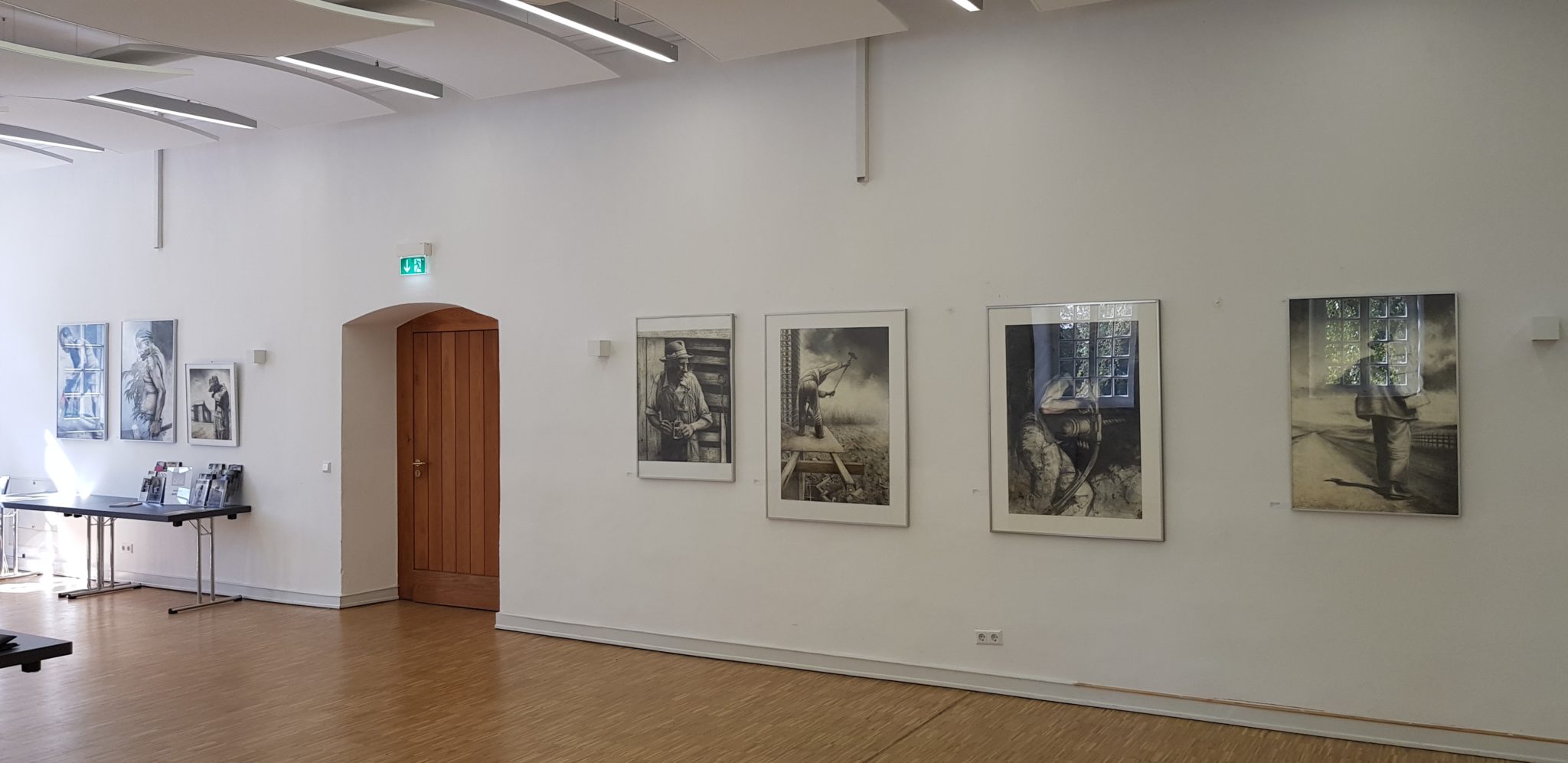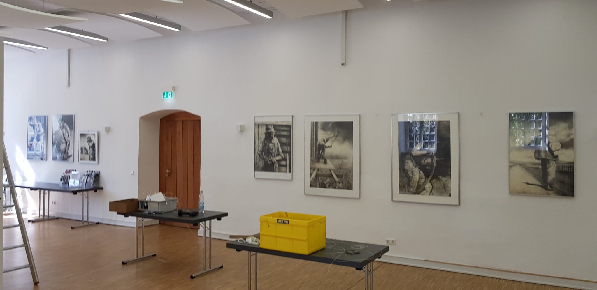 Nachdem Plan A hinsichtlich Hängung also hinfällig war, Plan B, der mir schon vor der Fast-Katastrophe angetragen wurde, mir aber nicht behagte, da ich den Saal nicht wechseln wollte, dann nach dem Ableben dreier großer Rahmen nun erneut als Plan C aber wieder ins Gespräch kam, war es am Ende dann sogar Plan D. Manchmal läuft es am Ende eben anders als man denkt.
