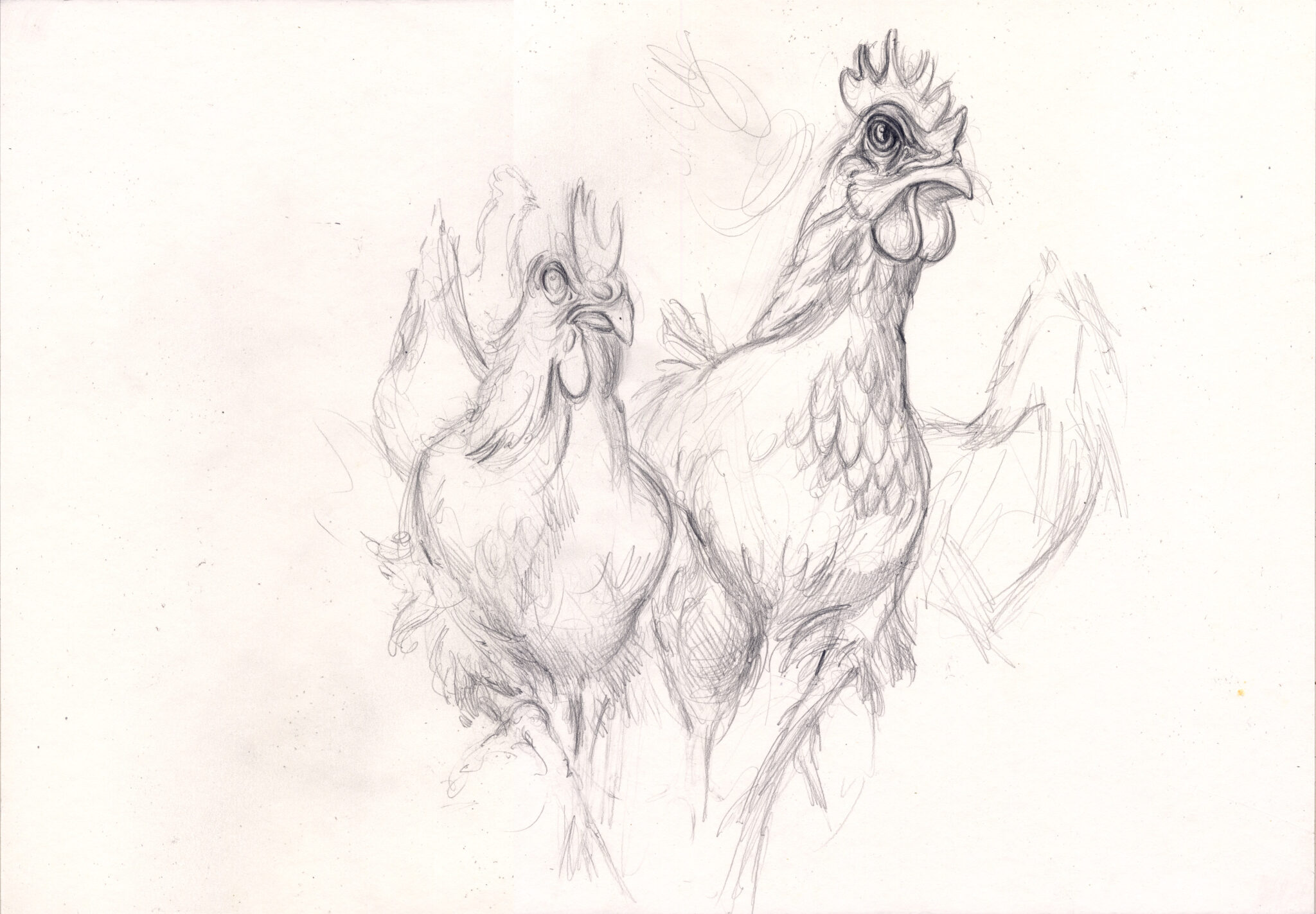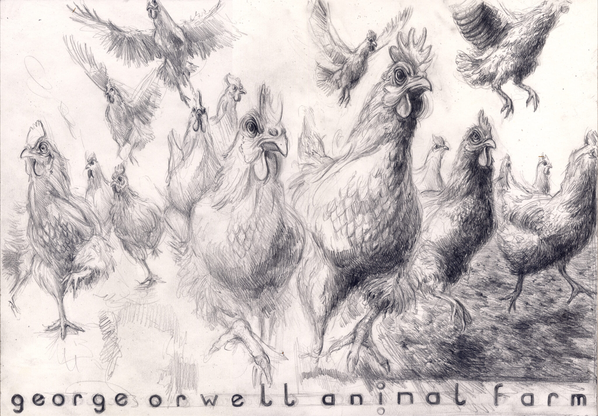 In beiden Fällen bleibt der Bezug zu Orwell spürbar, doch deine Arbeiten lösen sich zugleich von der literarischen Vorlage und öffnen einen eigenen Raum. Der Aufstand der Hühner wird nicht nur als Episode eines politischen Gleichnisses sichtbar, sondern als universelles Bild für die fragile Grenze zwischen Ohnmacht und Handlung, zwischen Erkenntnis und Aufbruch.