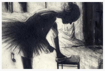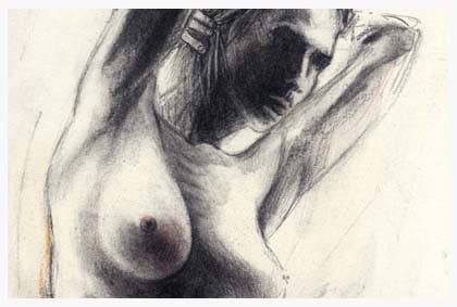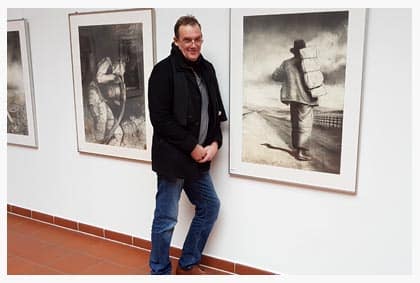 Andreas Noßmann zeigt seine Werkschau der Zeichnungen Eschwege- Eine Tänzerin mit Ballettschuhen in den Händen und blutenden Füßen wendet sich… Der Meister der Stifte stellt im Hochzeitshaus aus