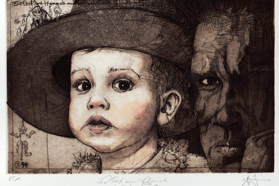 Schöne gut erhaltene, handkolorierte Radierung von einer Platten, von 1994. Restblatt/Format: 34 x 49,5 cm 160 €[bigContact form=on] Views:… Selbst mit Hannah und Hut von Torsti II