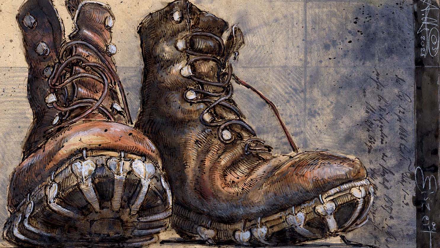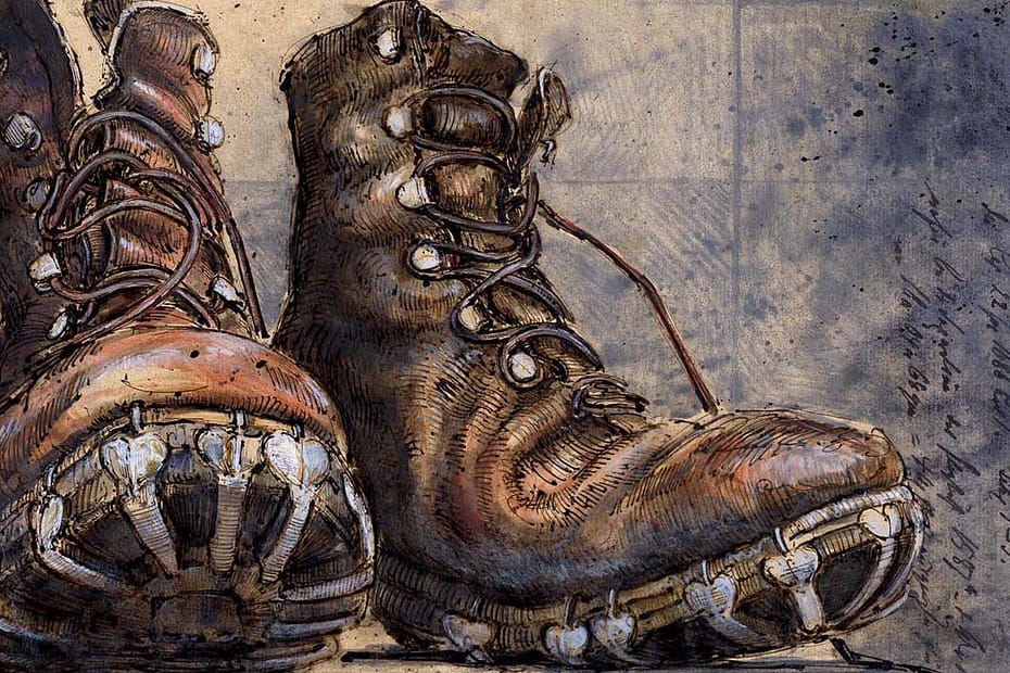 Nun endlich einmal ein „ernsthaftes“ Paar Schuhe nach so vielen Tretern, rein der puren Anekdote verpflichtet, welche ich selber auch… Die ausgetretenen Stiefel des Meisters