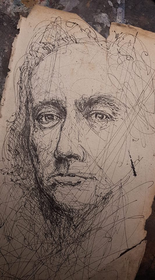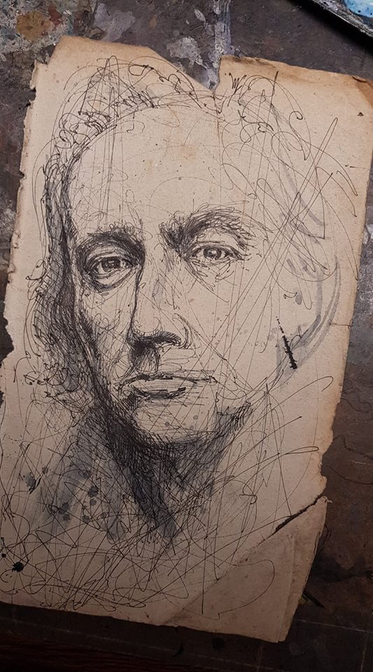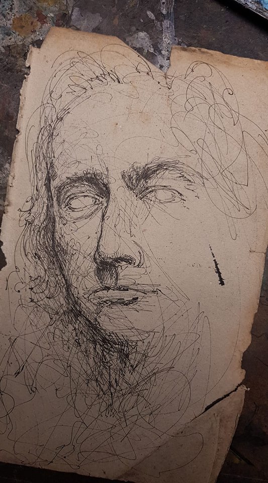 Federzeichnung, Farbstift, Aquarell