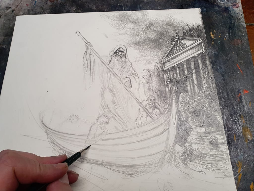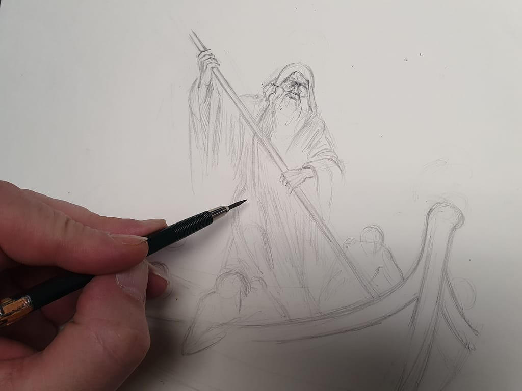 Charon bleibt eine eindrucksvolle Figur, die die unausweichliche Realität des Todes verkörpert und die Vorstellung vom Übergang ins Jenseits in der menschlichen Kultur fest verankert hat. Sein Bild als Fährmann, der die Seelen über die dunklen Wasser der Unterwelt führt, bleibt ein starkes Symbol für den letzten Schritt, den jeder Mensch letztlich gehen muss.