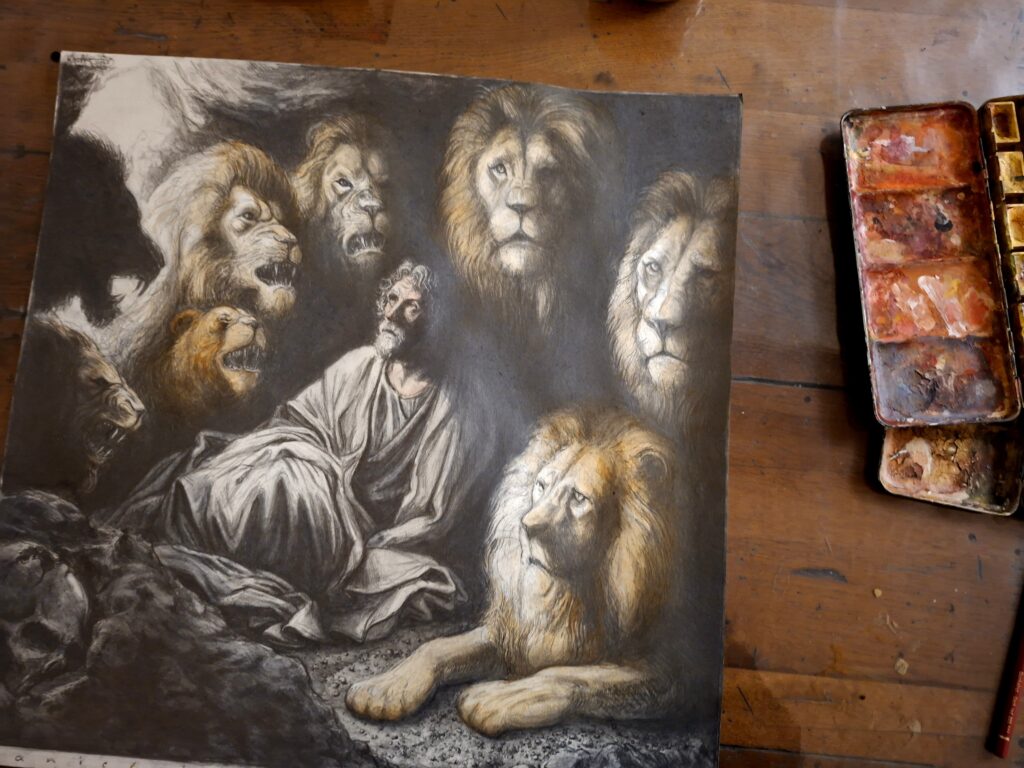 Die Löwengrube — dieses Bild ist so übermächtig, dass es fast die feineren Nuancen der Geschichte überdeckt. Doch gerade sie machen die Szene so eindringlich. Man stelle sich die Nacht vor, die Daniel dort verbringt: das Atmen der Tiere, das Scharren, die Nähe des Todes, der nicht als Feind erscheint, sondern als Möglichkeit. Und Daniel, der in dieser Finsternis nicht verzweifelt, sondern innerlich aufrecht bleibt. Es ist ein Moment, in dem ein Mensch auf das Äußerste reduziert wird — und gerade dadurch zu sich selbst findet.