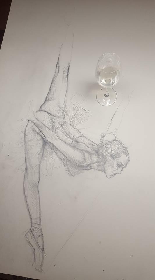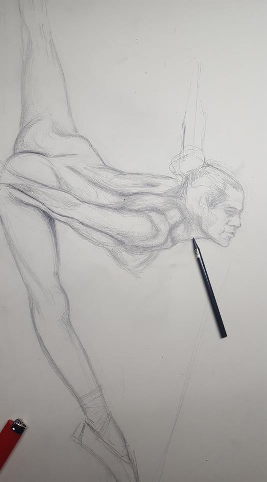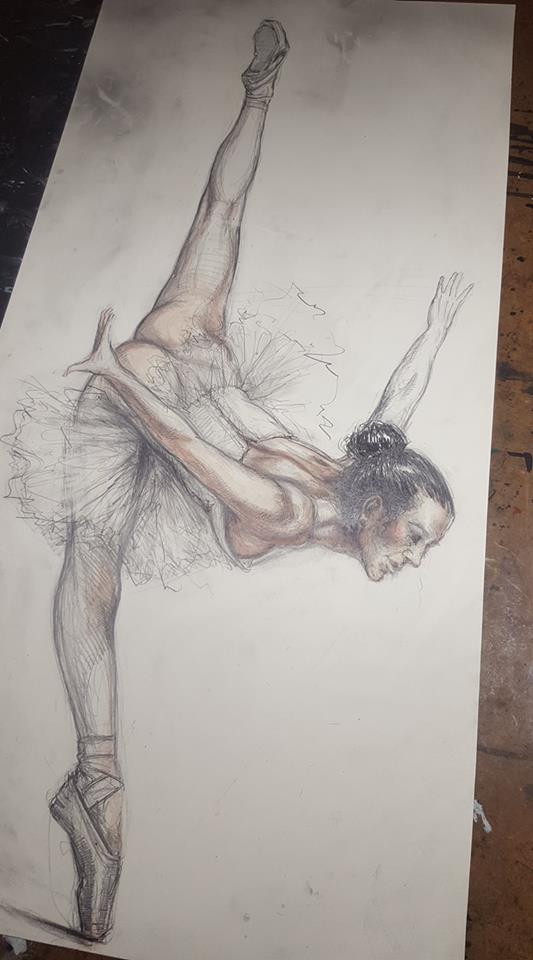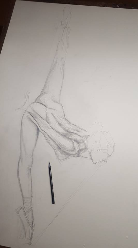 Bleistift, Farbstift, Aquarell, Pastell, weiße TuscheWvz. 5074Format: 965 x 490 mmDezember 2017