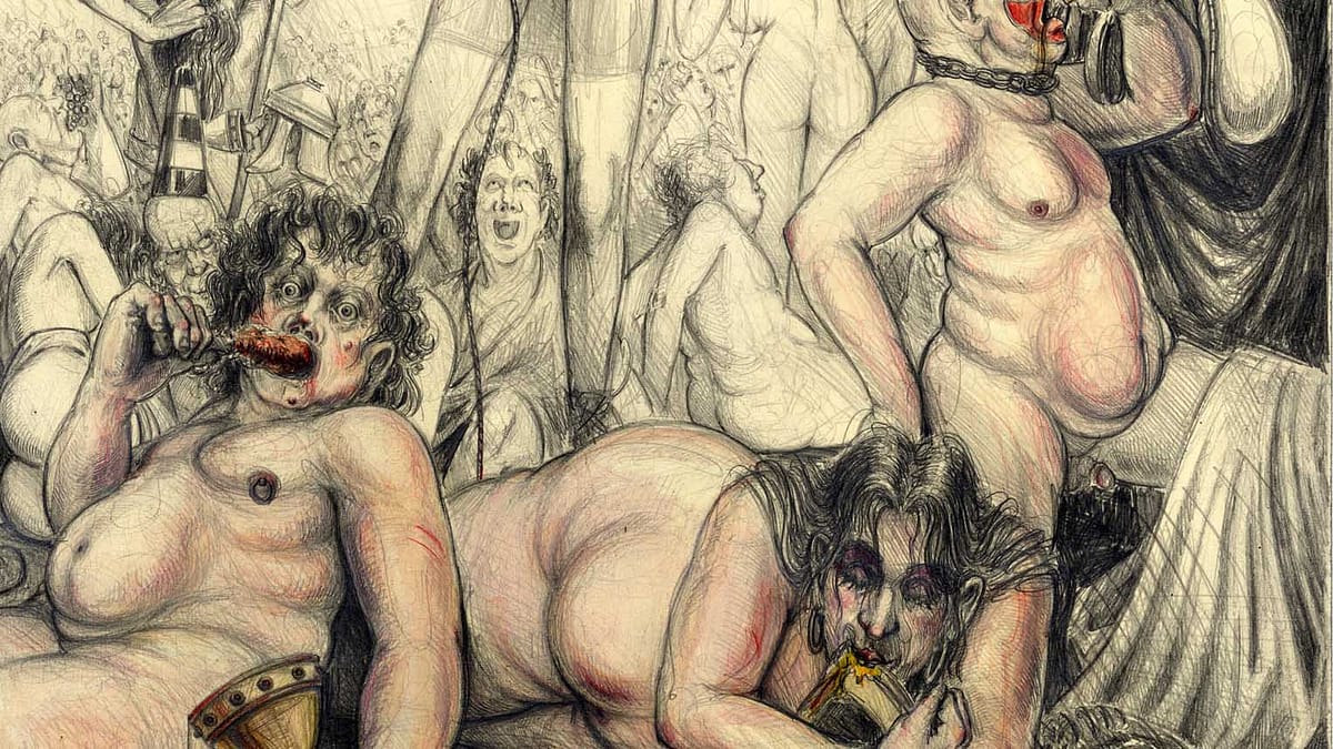 “Der außergewöhnliche Zeichner Andreas Noßmann erschafft in seinem Zyklus über die Hauptlaster des Menschen ein schonungsloses Bild einer entfesselten, von allen guten Geistern verlassenen Gesellschaft. In provokanten, ironischen, teils auch erschütternd brutalen Bildern vermag er dem allgegenwärtigen Thema der lasterhaften Charaktereigenschaften wie Habgier, Genusssucht, Völlerei oder Trägheit Ausdruck zu verleihen. Im Hinblick auf das Tagesgeschehen ein aktuelles Thema. Aus den Todsünden des Mittelalters sind moderne Tugenden geworden. Die in meisterlicher Manier gezeichneten Arbeiten schließen nahtlos an die Tradtion der großen Magier des Zeichenstifts an: von Wilhelm Busch, Janssen, Goya bis Hrdlicka.” (Galerie Angelika Blaeser, Düsseldorf 2010)