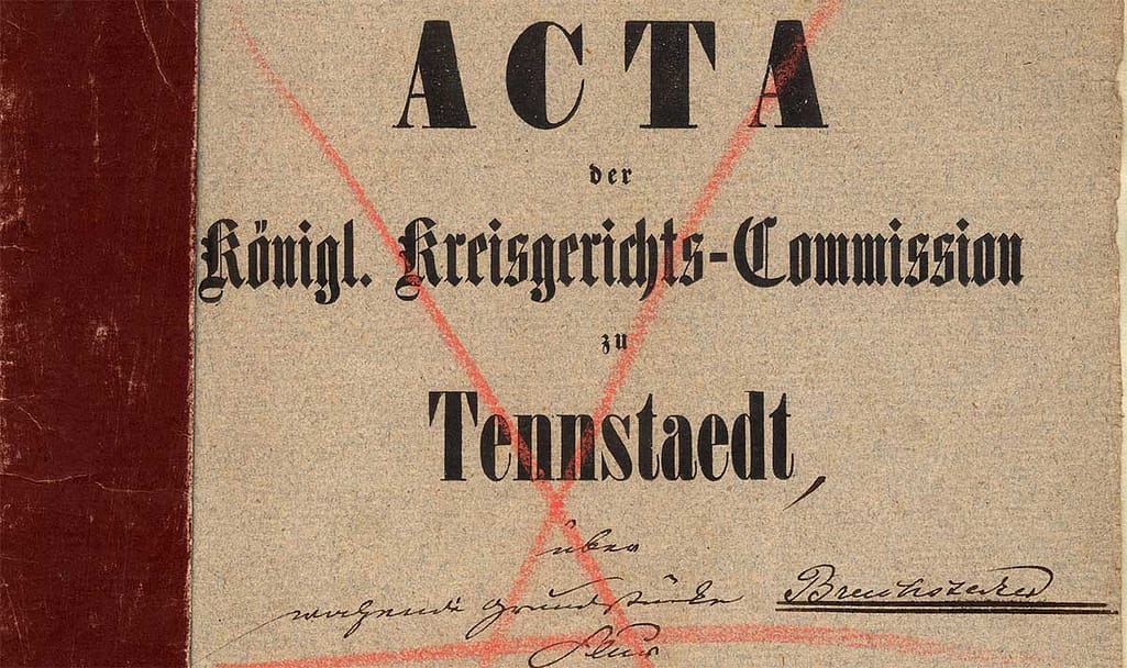 So gut wie alle Akten stammen aus dem ehemaligen königlichen Kreisgericht zu Tennstaedt, weisen somit auch alle fast die gleichen Titelseiten und Umschläge auf, die immer aus recht festem Karton bestehen und auf denen ich, zumeist auf deren Rückseiten, auch schon so zahlreiches verewigt habe. Die Qualität der Innenseiten ist halt recht unterschiedlich, da eben über die Jahrzehnte auch immer wieder „hinzugenäht“ wurde. Da finden sich zum einen sehr saugkräftige Papiere, dann zum anderen auch sehr glatte wieder, auf dem die Feder geradezu tanzt.