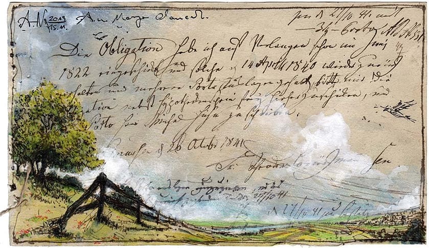 Auch wenn an einigen Akten und Papieren schon der Zahn der Zeit recht sichtbar genagt hat, Spuren der Verrottung deutlich sichtbar sind, so ist es doch recht erstaunlich, wie gut sich diese Papiere (zumeist immer mit handschriftlichen Eintragungen versehen), zum Teil bis zu 200 Jahre alt (oder älter), von mir anstandslos bearbeiten lassen. Hier löst sich kein Papier, selbst nach dem 5ten oder 6ten aquarellier Vorgang, dem nachhaltigen Quälen mit dem Farbstift, dem nochmaligen überzeichnen mit der Feder, an keiner Stelle in Nichts auf.
