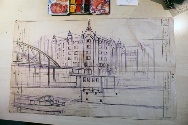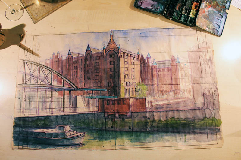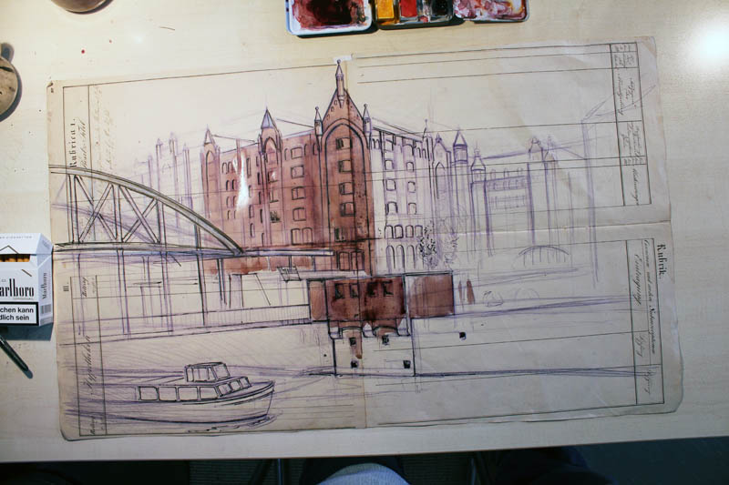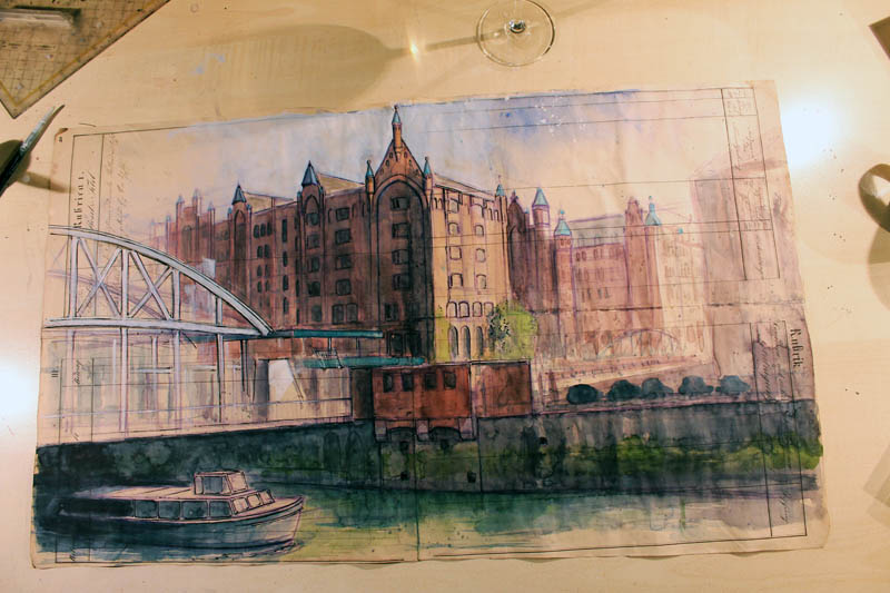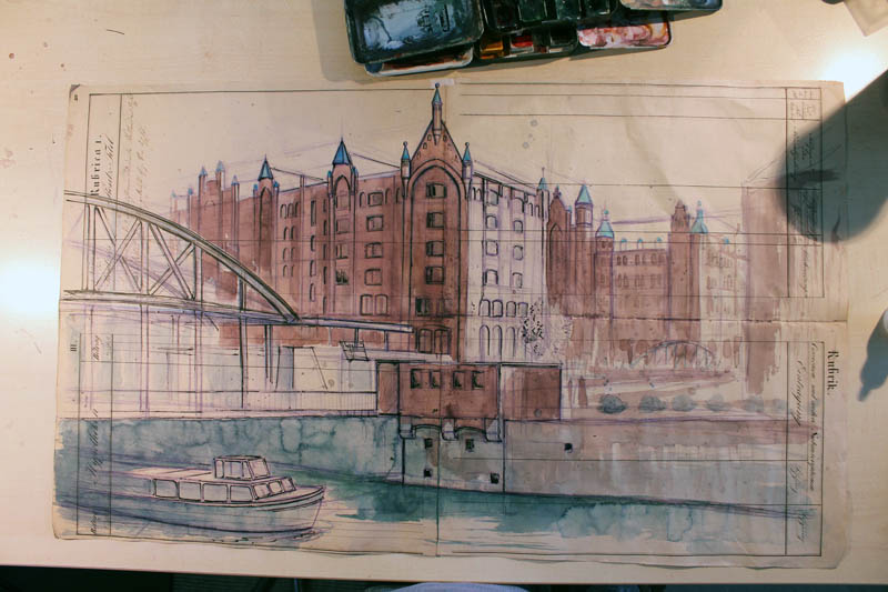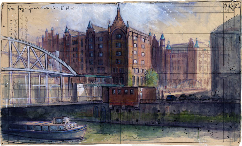 Federzeichnung, Farbstift, Aquarell, weiße Tusche, Pastell