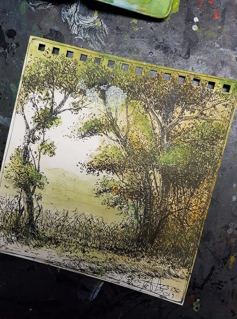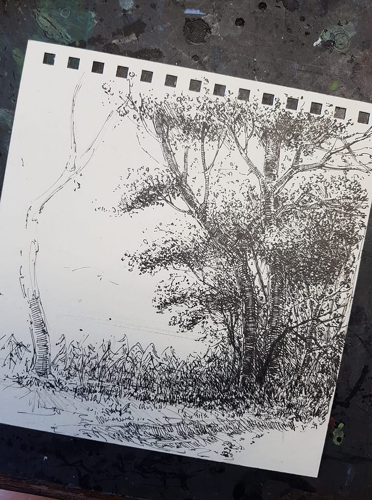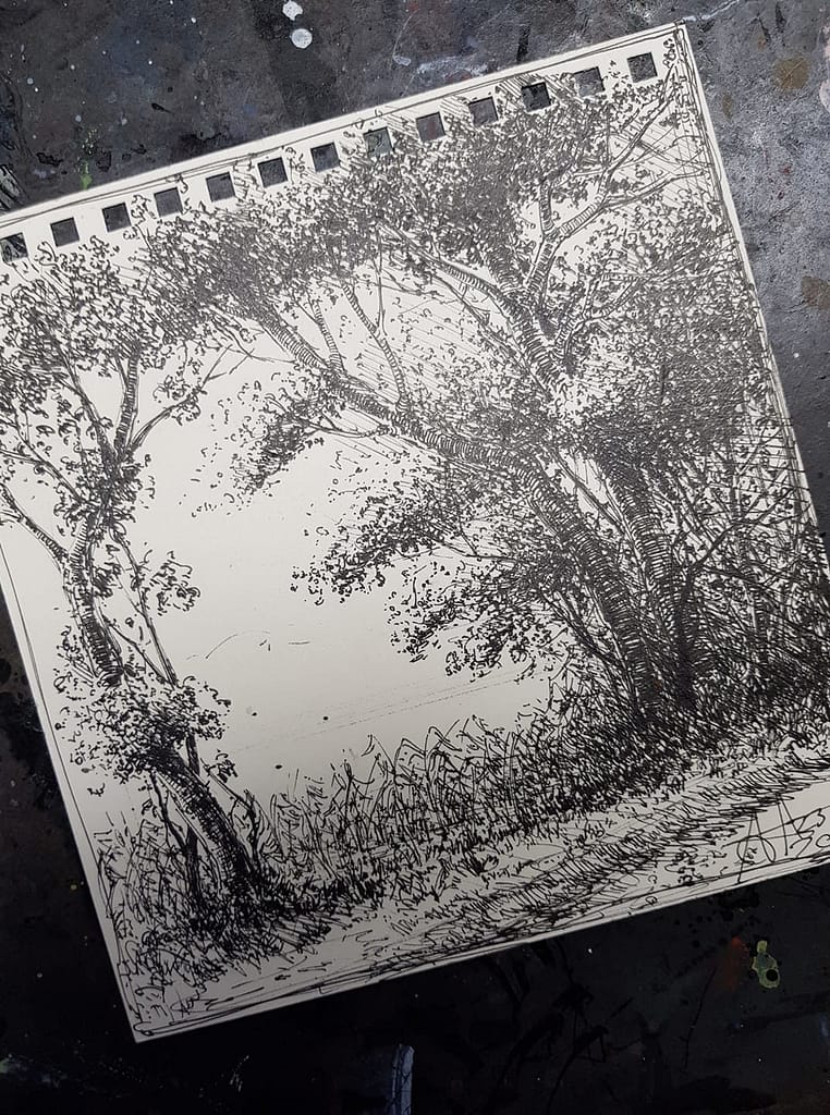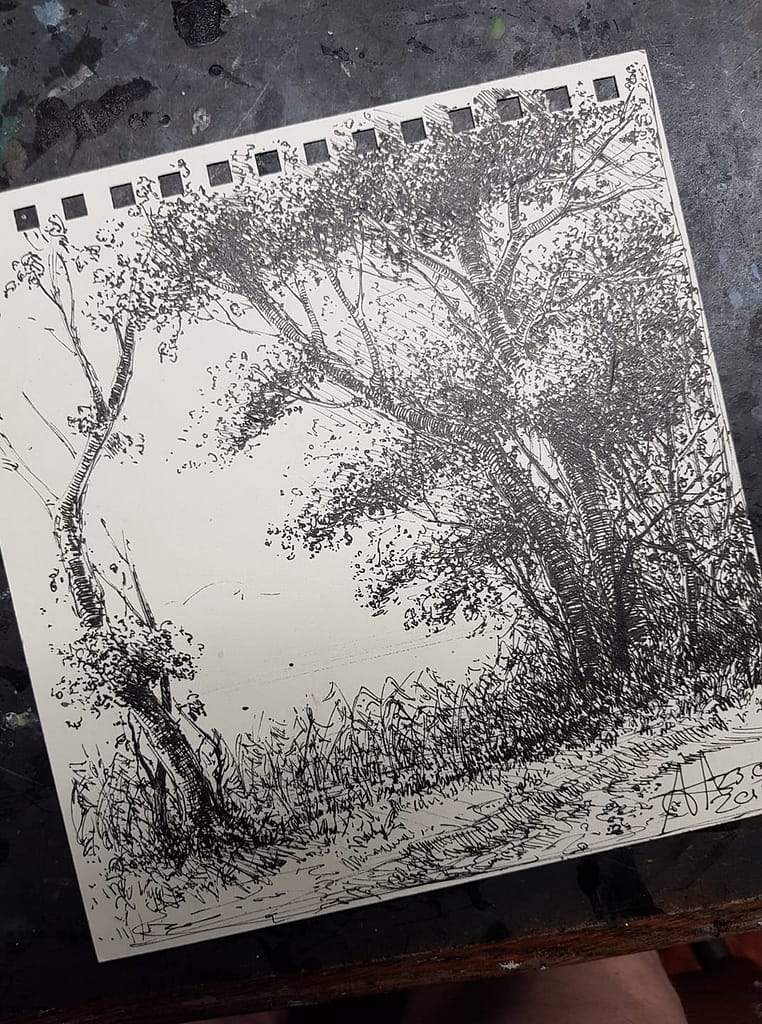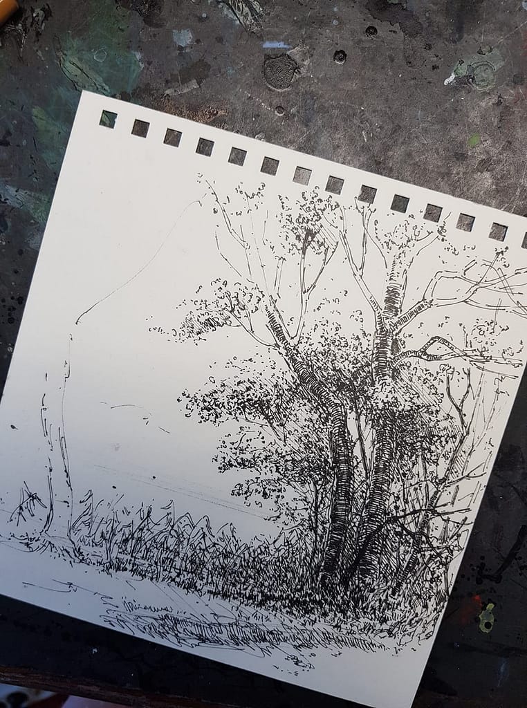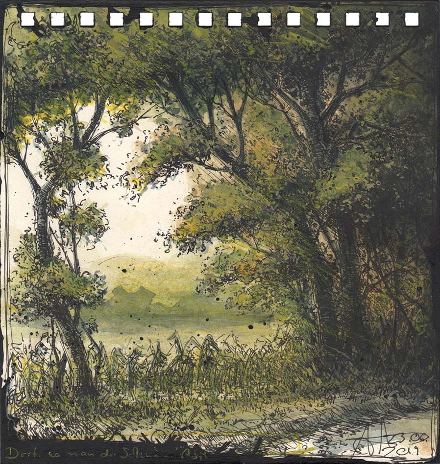An diesem Tage gab es ein Plein Air Zeichnen auf dem Wege Richtung Seebrücke, welcher den Prerower Strom einige wenige Meter kreuzt. Eine Schwanenfamilie, mit fünf Kleinwüchsigen, fühlte sich ganz offensichtlich in ihrem Revier und natürlichen Neugier gestört, wodurch sich Vater Schwan, sich immer weiter nähernd, zu einem warnendem Zischen und Fauchen veranlasst sah.