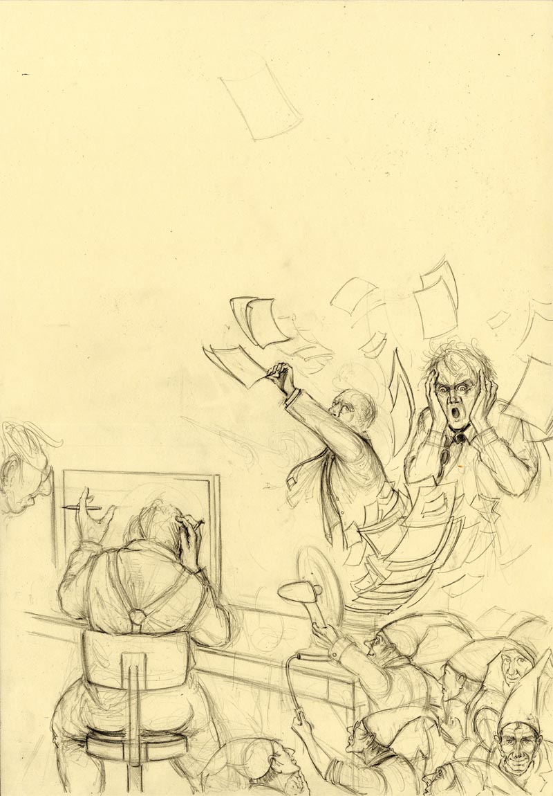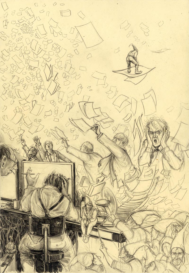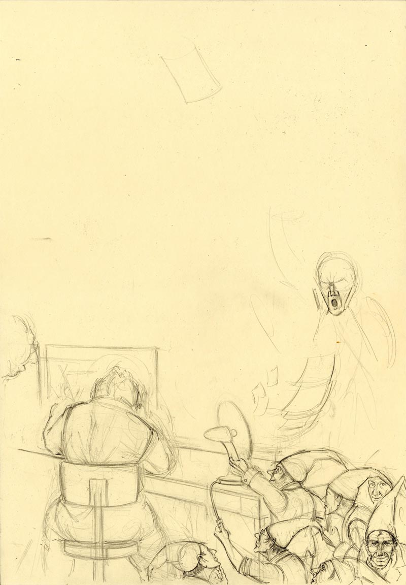 Bleistift, Farbstift, Aquarell, weiße Tusche