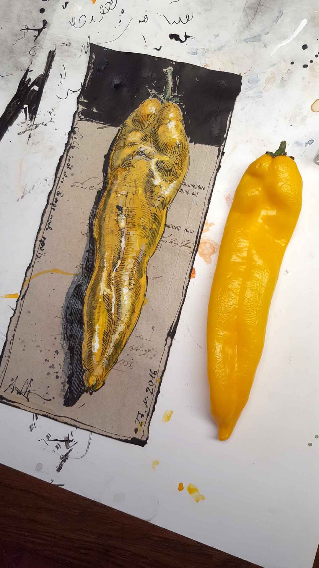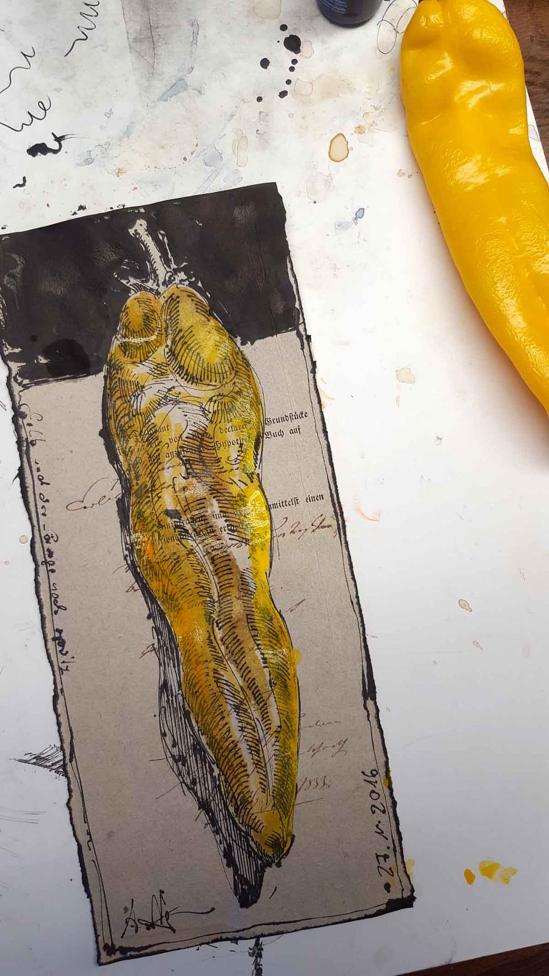 Gelb und der länge nach spitzArbeiten - Step by Step29. November 201629. November 2016 13,38 x 5,70 inch, water color, pen and ink, colored pencil 34 x 14,5 cm Federzeichnung, Aquarell, Farbstift Views: 0Vorheriger BeitragGroßer MangoldNächster BeitragEdgar Allen Poe