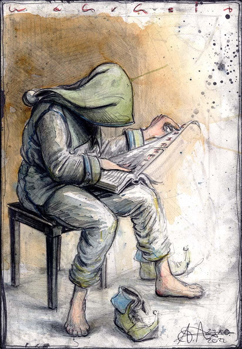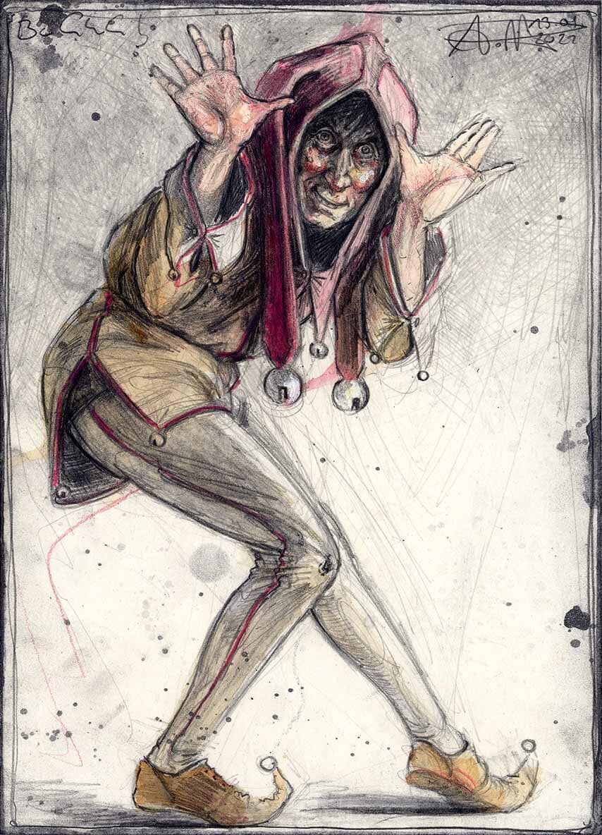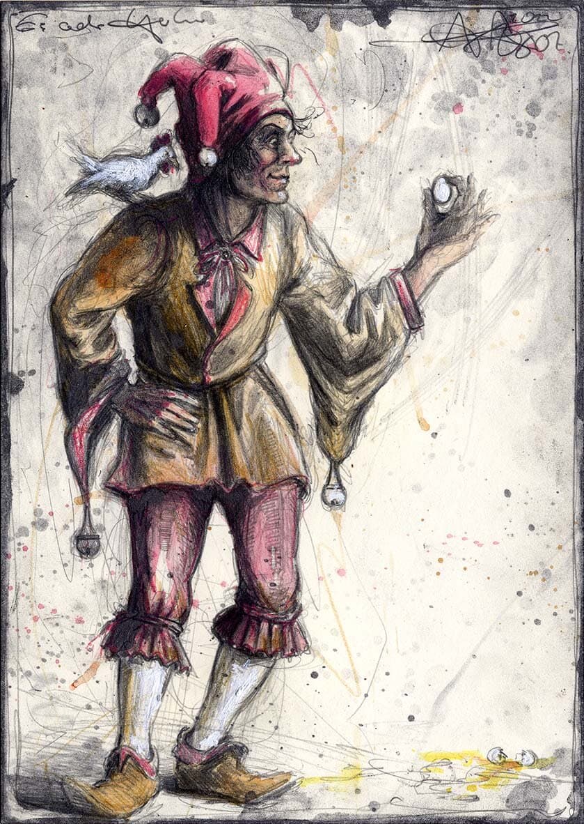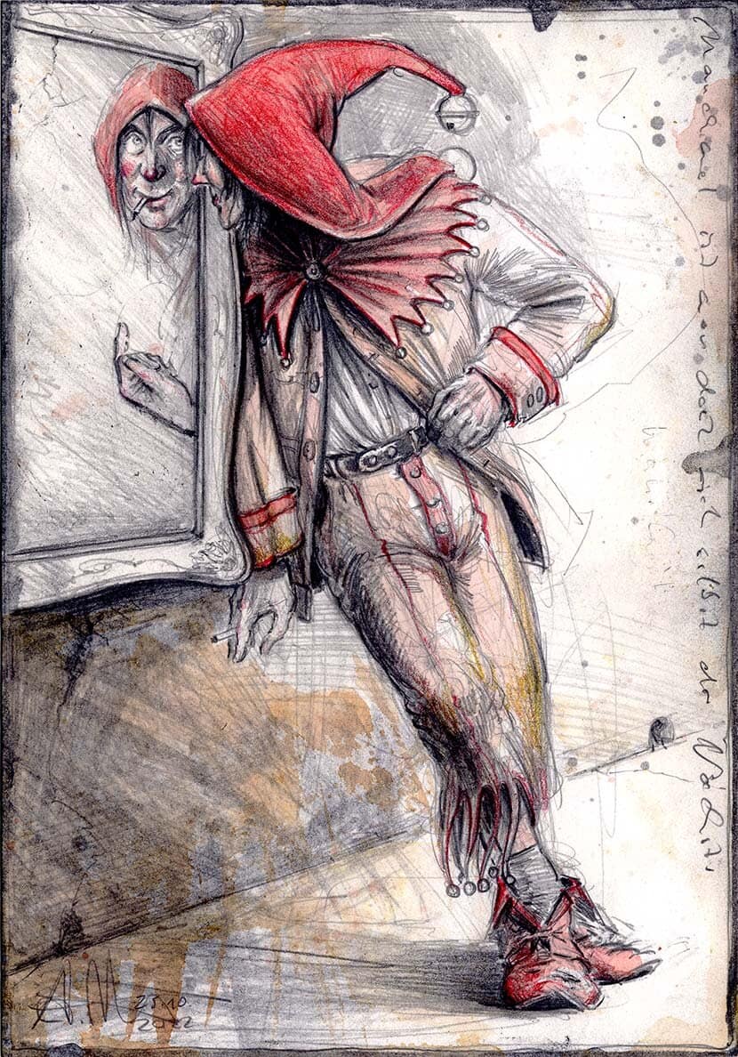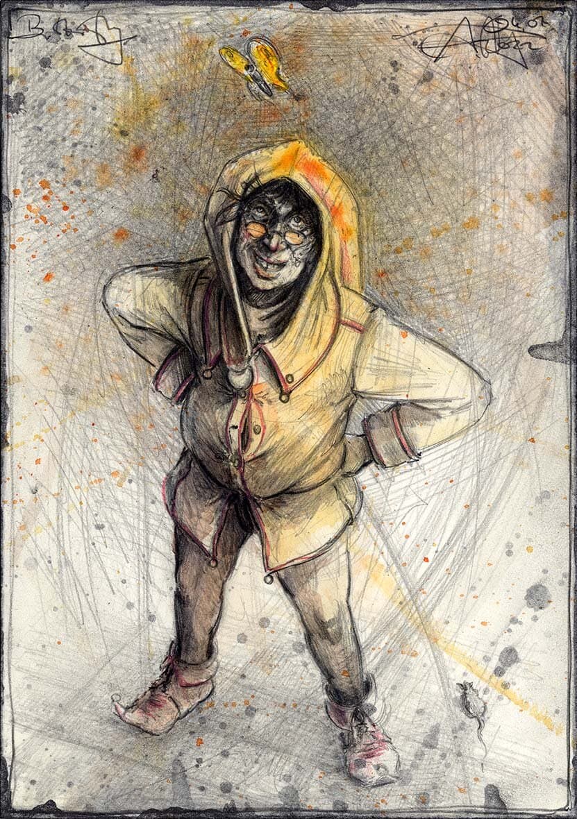 Federzeichnung, Farbstift, Aquarell