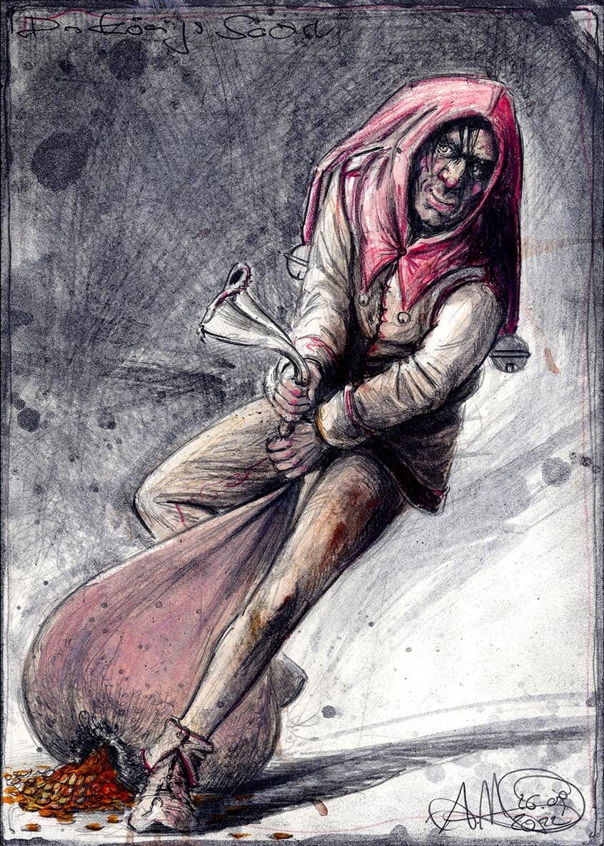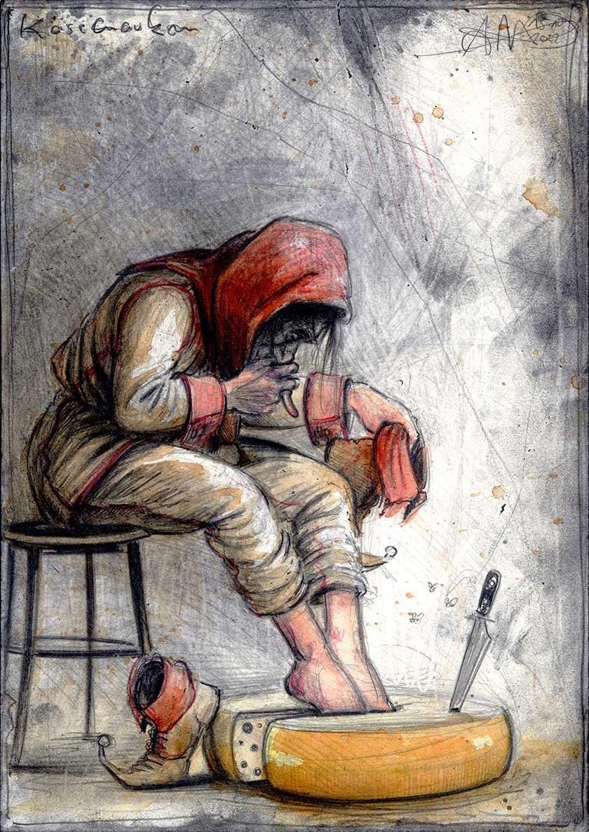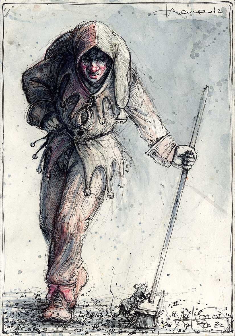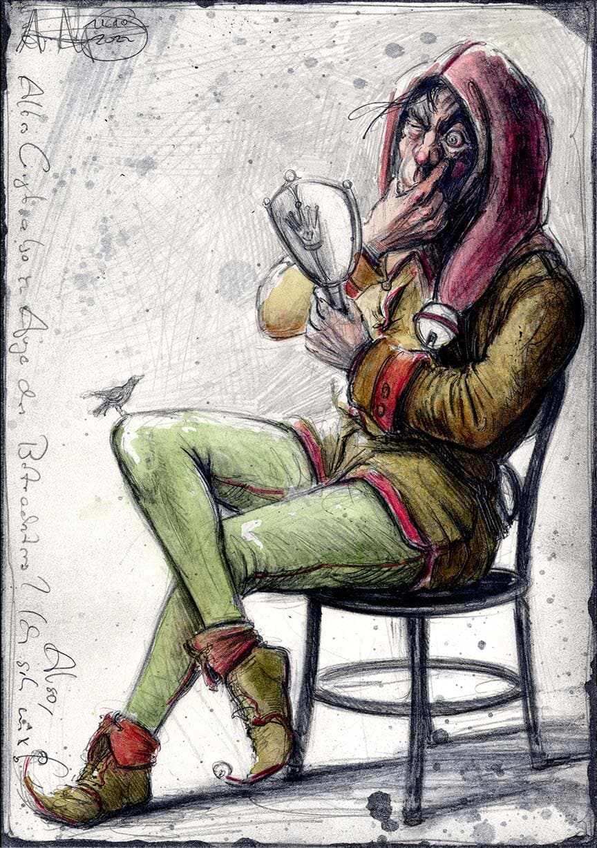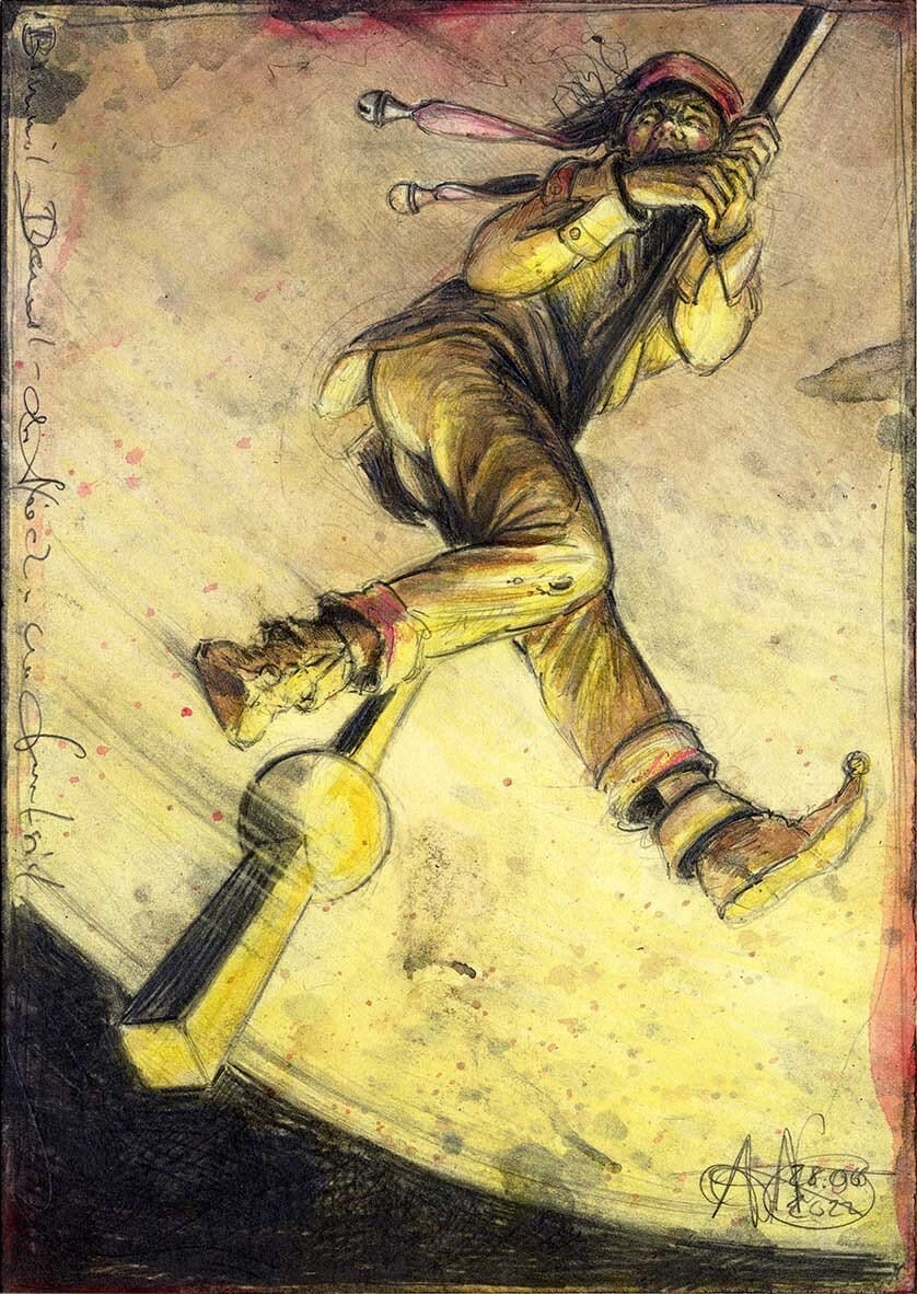 Federzeichnung, Farbstift, Aquarell