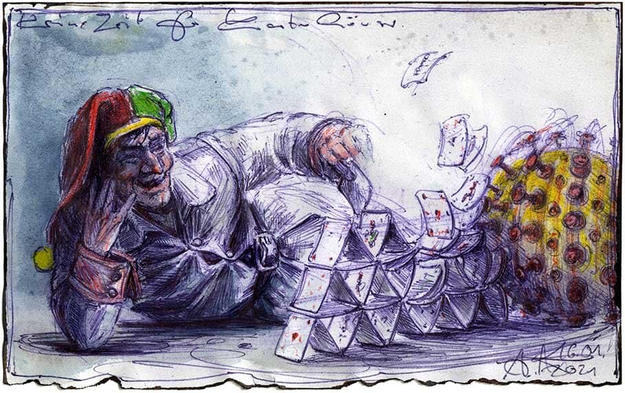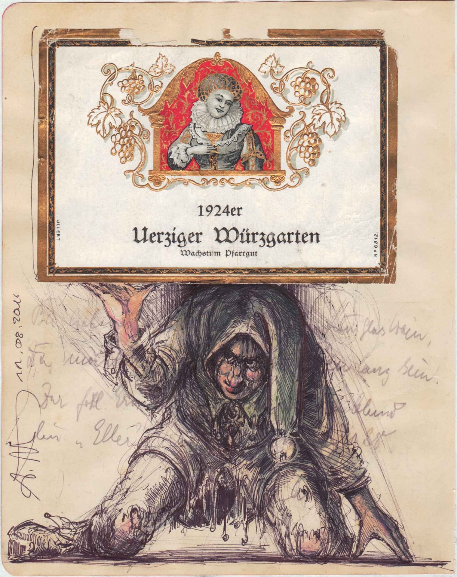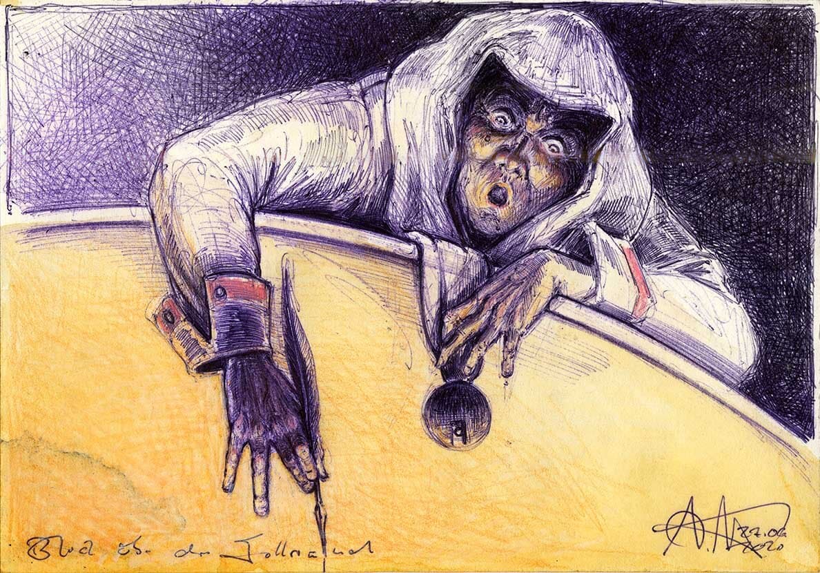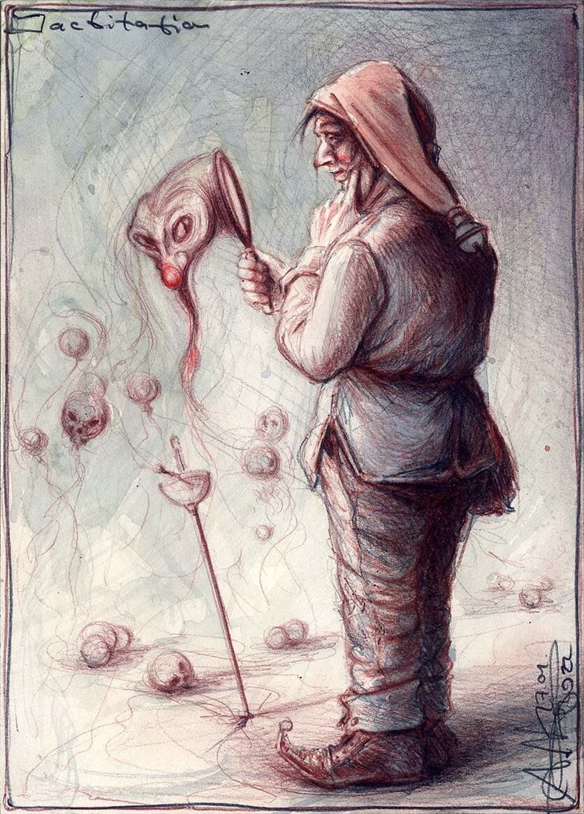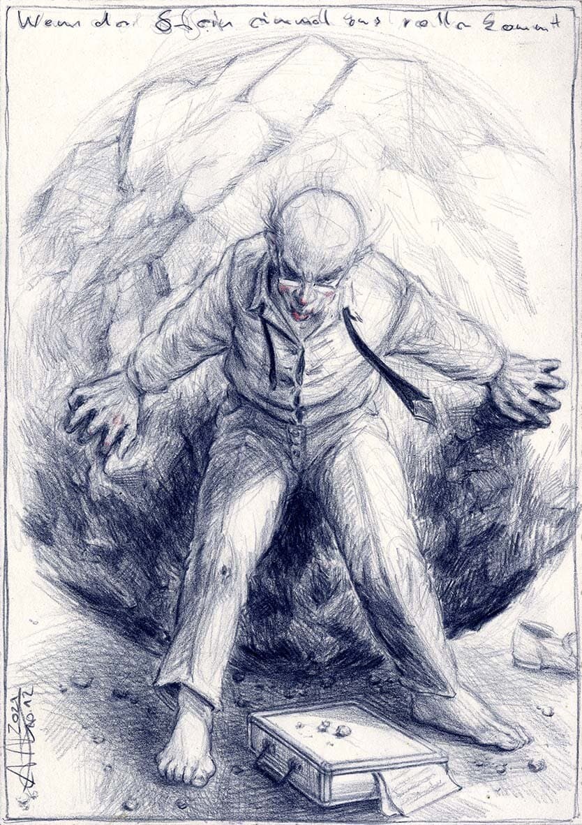 Kugelschreiber, Farbstift, Aquarell