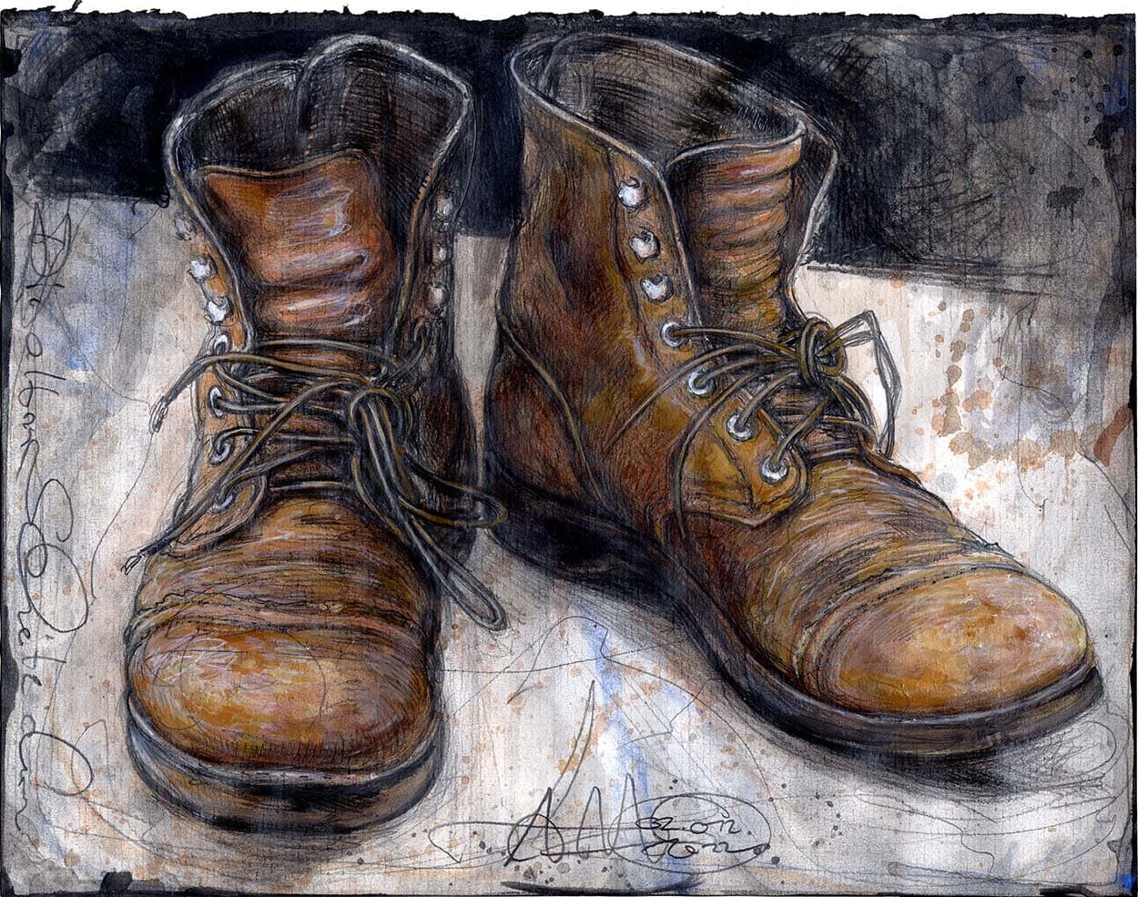 Federzeichnung, Farbstift, Aquarell