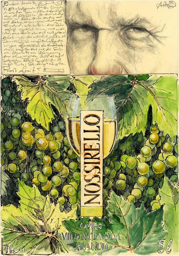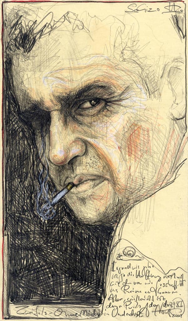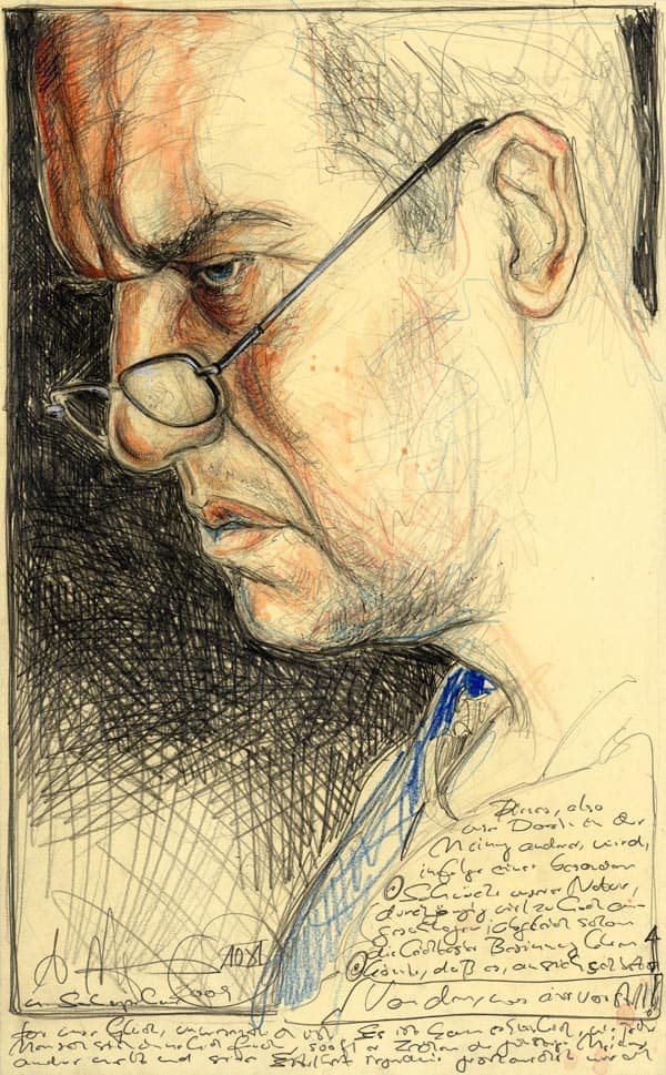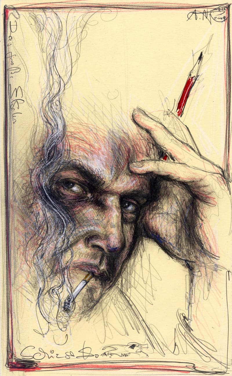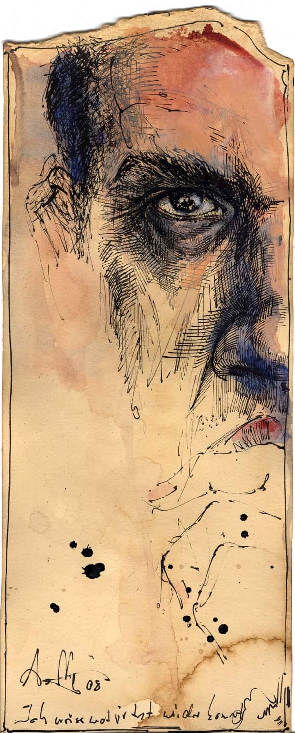 Bleistift-Federzeichnung, Farbstift, Aquarell, Tusche