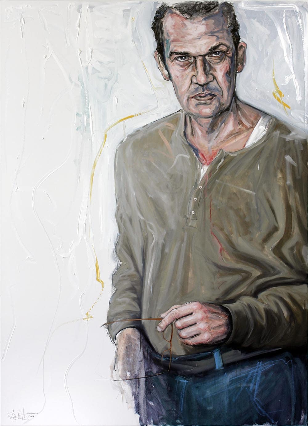 Bleistift, Ölkreide, Ölfarbe auf Leinwand