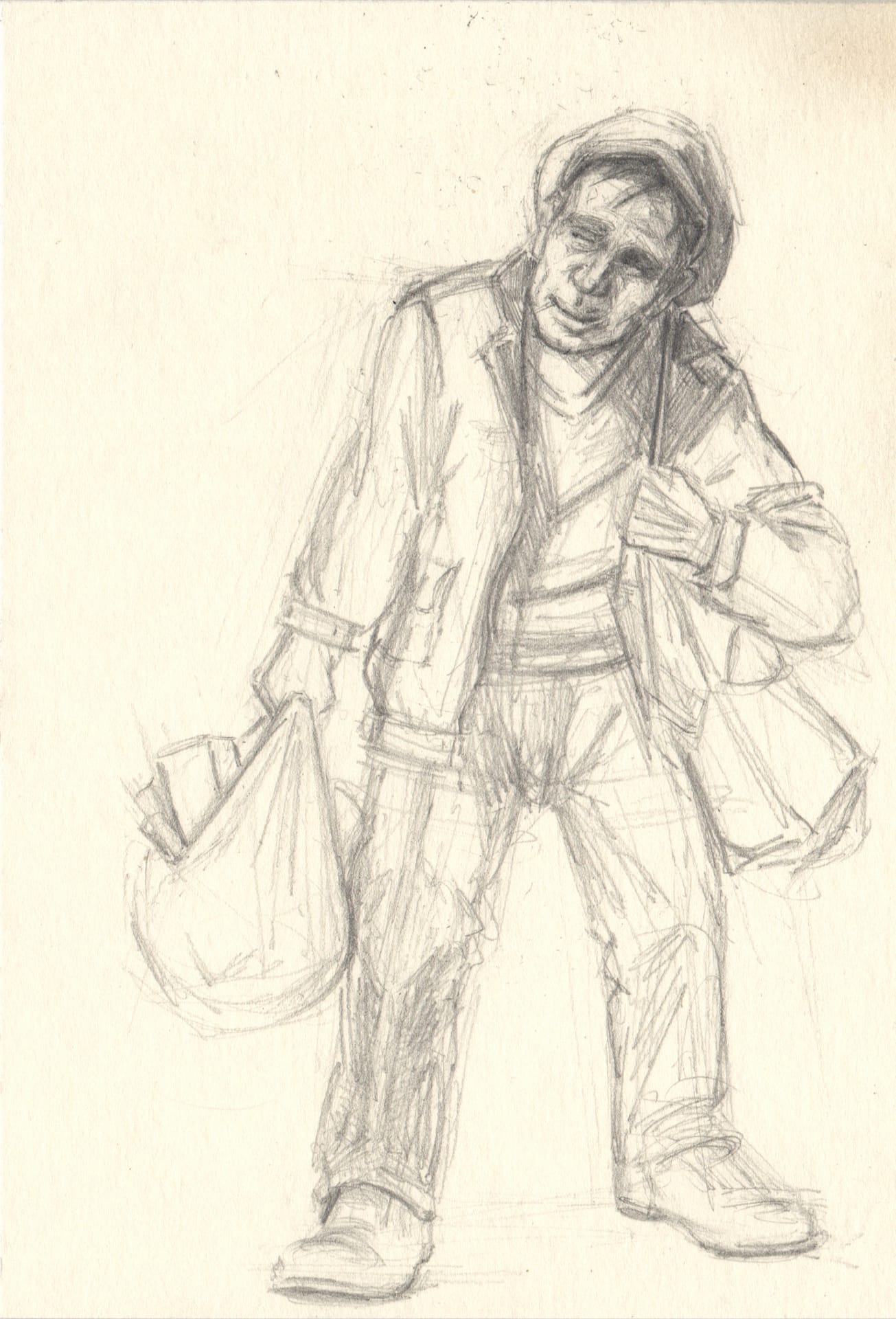 6,89 x 4,25 inches, lead and colored pencil/water color, 17,5 cm x 12,5 cm, Bleistift/Farbstift/Aquarell