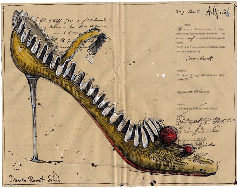 Damen Piorrot Schuh1. August 2015 Federzeichnung, Farbstift, Aquarell, TuscheWvz. 4424Format: 330 x 420 mmOktober 2008 Vorheriger BeitragIgelinnen SchuhNächster BeitragSauwohl-fühl Damenschuh