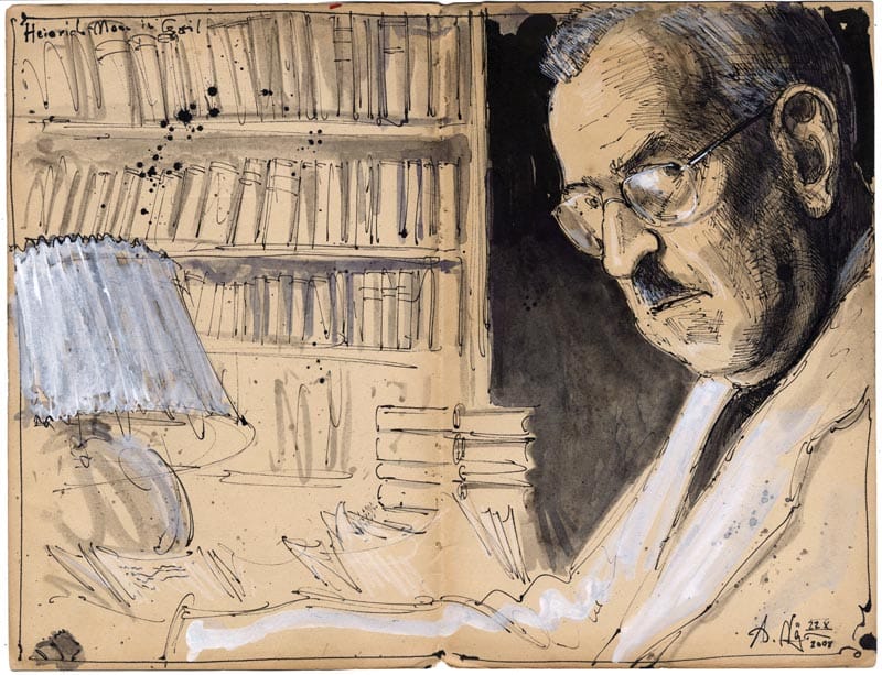 Heinrich Mann im Exil1. August 20159. Juli 2019 Federzeichnung, Farbstift, Aquarell, TuscheWvz. 4433Format: 361 x 470 mmOktober 2008 Vorheriger BeitragButterfly SchuhletteNächster BeitragDer Abgesang
