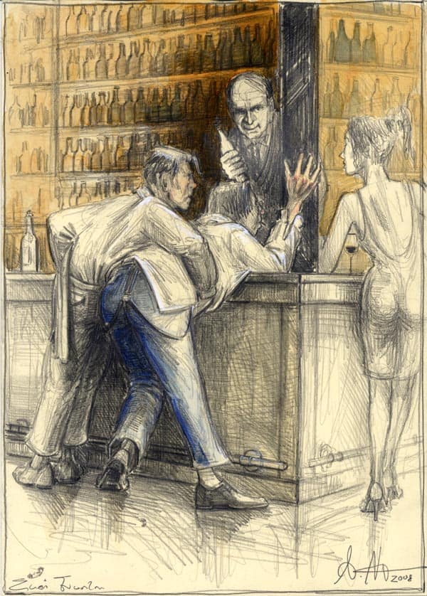 Zwei Trunken1. August 2015 Bleistift, Farbstift, Aquarell, TuscheWvz. 4444Format: 350 x 250 mmNovember 2008 Vorheriger BeitragGula – VöllereiNächster BeitragVirtuose I. – Janos Maté