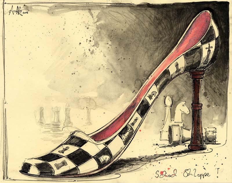 Schach-Schlappe1. August 2015 Federzeichnung, Farbstift, Aquarell, TuscheWvz. 4456Format: 340 x 428 mmDezember 2008 Vorheriger BeitragReflexitätenNächster BeitragDer dürerrische Hausschuh