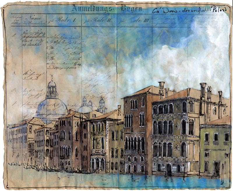 Ca´ Dario – der verfluchte Palast24. Juli 2015 Federzeichnung, Farbstift, AquarellWvz. 4465Format: 346 x 422 mmJanuar 2009 Vorheriger BeitragKleine KanalbrückeNächster BeitragHotel American