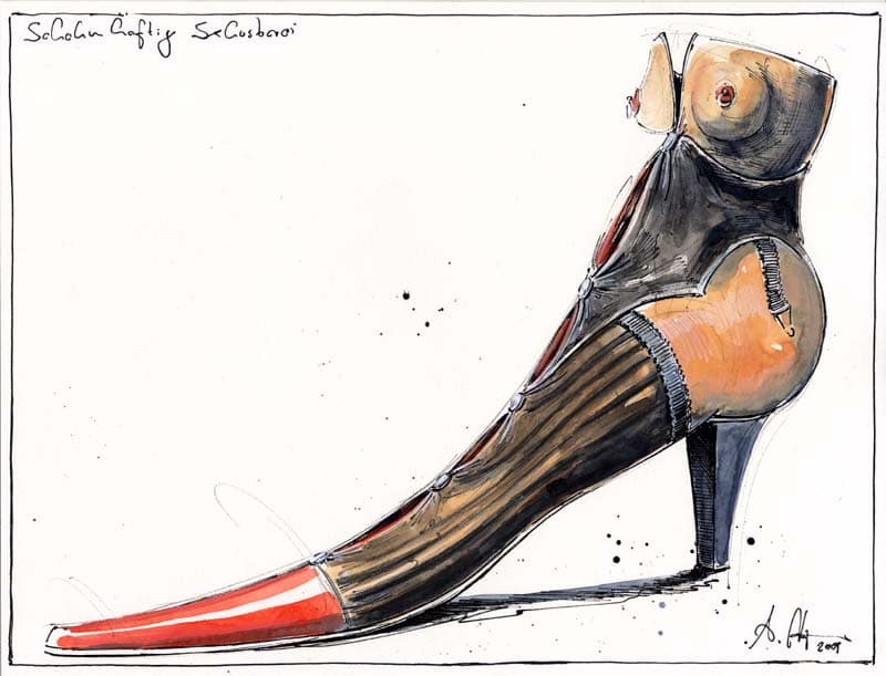 Schahmhaftige Schusterei24. Juli 2015 Federzeichnung, Farbstift, Aquarell, TuscheWvz. 4473Format: 332 x 435 mmJanuar 2009 Vorheriger BeitragReizverschluß GamascheNächster BeitragNachtelfen Schmuckschuh