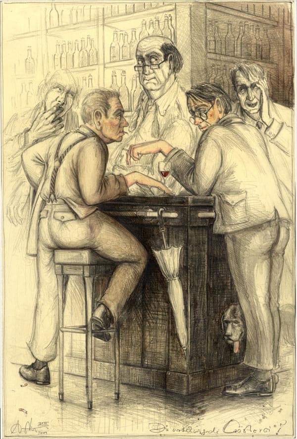 Die verschwiegende Lästerei24. Juli 2015 Bleistift, Farbstift, AquarellWvz. 4503Format: 600 x 400 mmMärz 2009 Vorheriger BeitragReflexitäre Aufmerksamkeiten um ein verloren gegangenes StrumpfbandNächster BeitragVertical Act II.