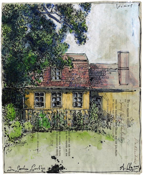 Weimar – Im Garten Goethes24. Juli 2015 Federzeichnung, Farbstift, Aquarell, TuscheWvz. 4534Format: 407 x 334 mmAugust 2009 Vorheriger BeitragSchuhlette mit nicht ganz jugendfreiem AbsatzNächster BeitragIRA – Vergeltung