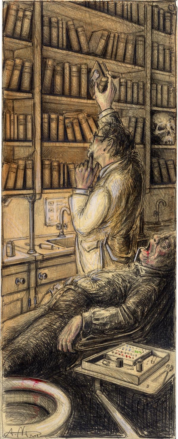 Diagnose: Wurzelspitzenresektion24. Juli 2015 Bleistift, Farbstift, AquarellWvz. 4565Format: 499 x 200 mmDezember 2009 Vorheriger BeitragEx Libris IV.Nächster BeitragFrohe Weihnachten – Der Kamingänger