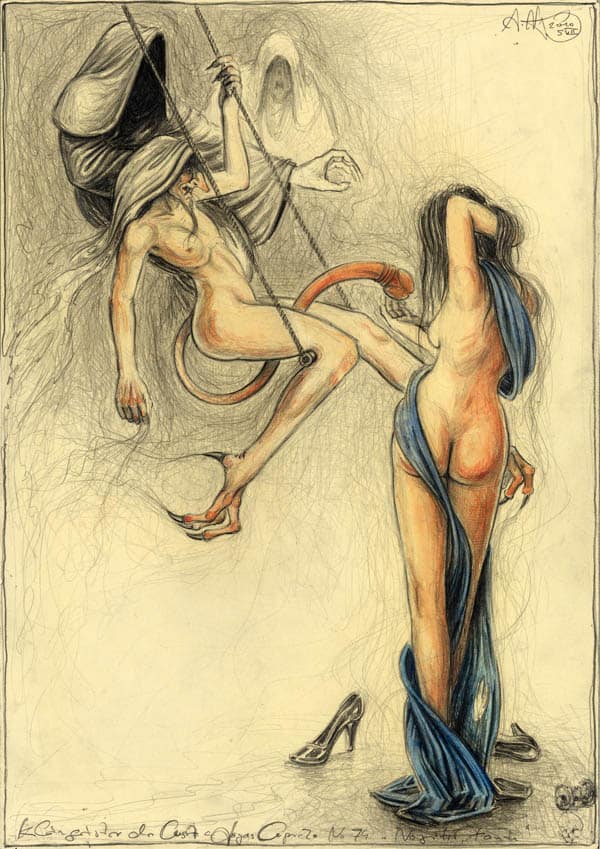 Kleingeister der Lust – nach Goyas Capricho No. 74 – No grites, tonta19. Juli 2015 Bleistift, Farbstift, AquarellWvz. 4615Format: 500 x 350 mmJuli 2010 Vorheriger BeitragEstan calientes – Zu heiß oder Traum von Männern die uns auffrassen.Nächster BeitragFußschweiss freier Damenschuh
