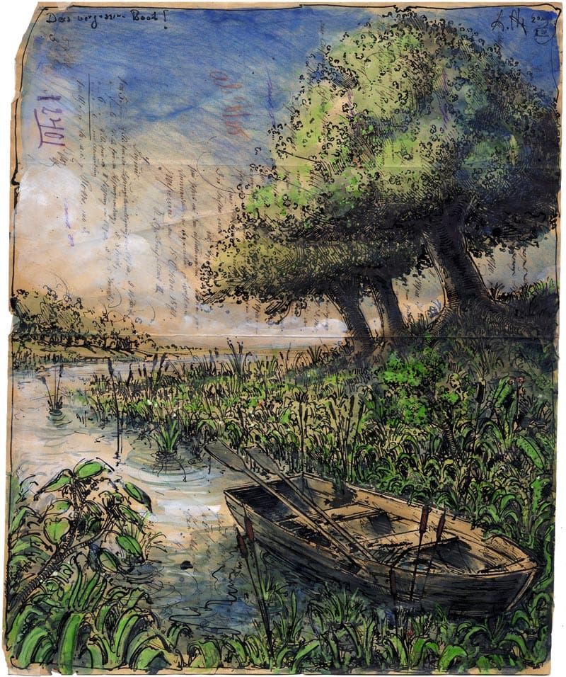 Das vergessene Boot19. Juli 2015 Federzeichnung, Farbstift, Aquarell, TuscheWvz. 4685Format: 414 x 340 mmMärz 2011 Vorheriger BeitragBaum zu TennstedtNächster BeitragDas Steigen und Fallen der von und zu (frei n. Goyas Capricho No.56)