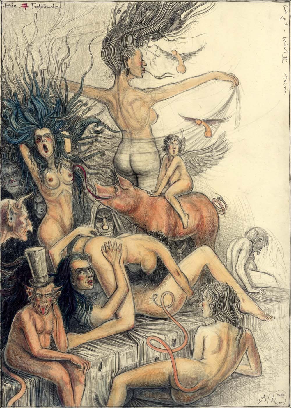 Wie geil – Wollust II. Luxuria19. Juli 2015 Bleistift , Farbstift, AquarellWvz. 4756Format: 700 x 500 mmDezember 2011 Vorheriger BeitragInvidia – ArgwohnNächster BeitragTony erfährt von Grünlichs Antrag
