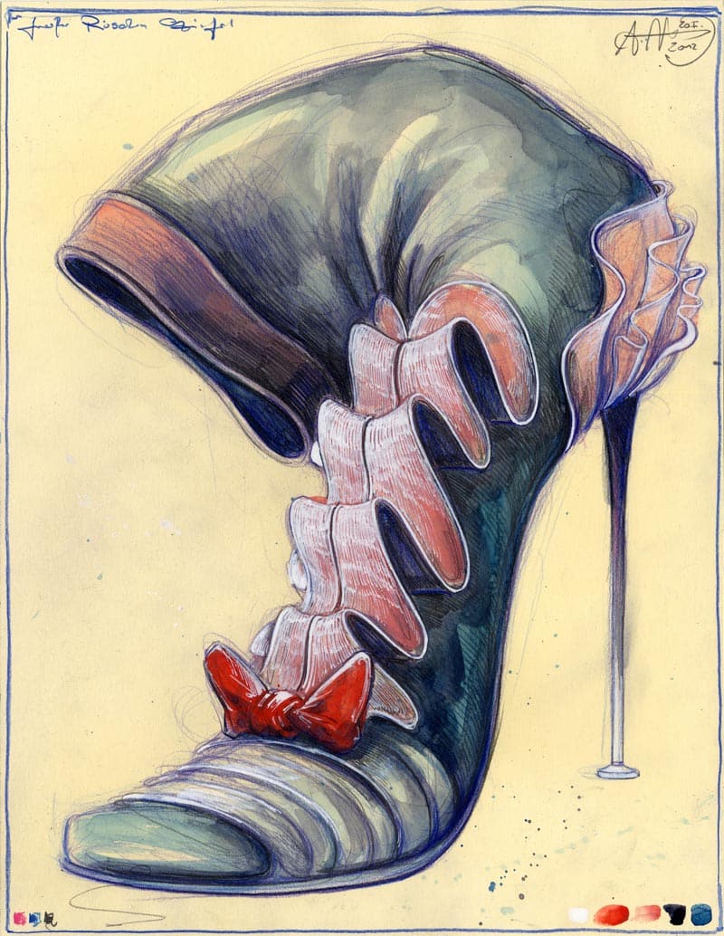 Großer Rüschenstiefel19. Juli 2015 Bleistift, FarbstiftWvz. 4771Format: 455 x 350 mmJanuar 2012 Vorheriger BeitragSoftgrüner Plateau SchuhNächster BeitragAuf der Suche nach der neuen Welt