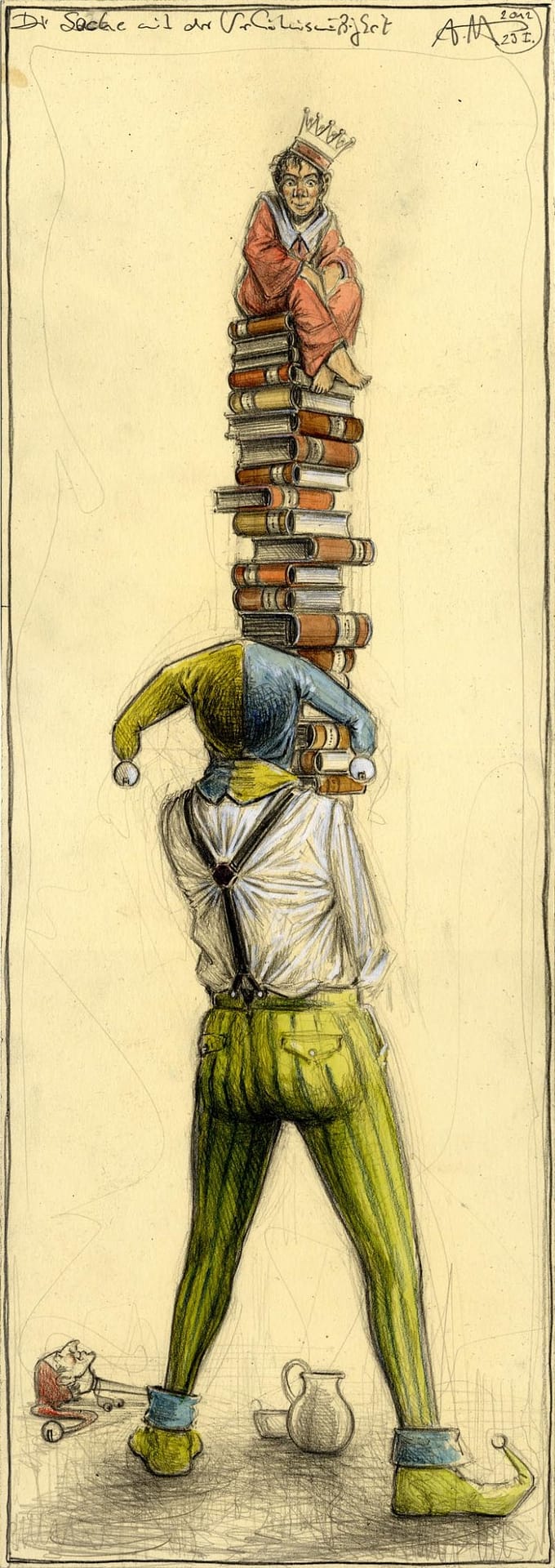Die Sache mit der Verhältnismäßigkeit19. Juli 2015 Bleistift, Farbstift, Aquarell, TuscheWvz. 4773Format: 500 x 175 mmJanuar 2012 Vorheriger BeitragAuf der Suche nach der neuen WeltNächster BeitragDie Häretiker