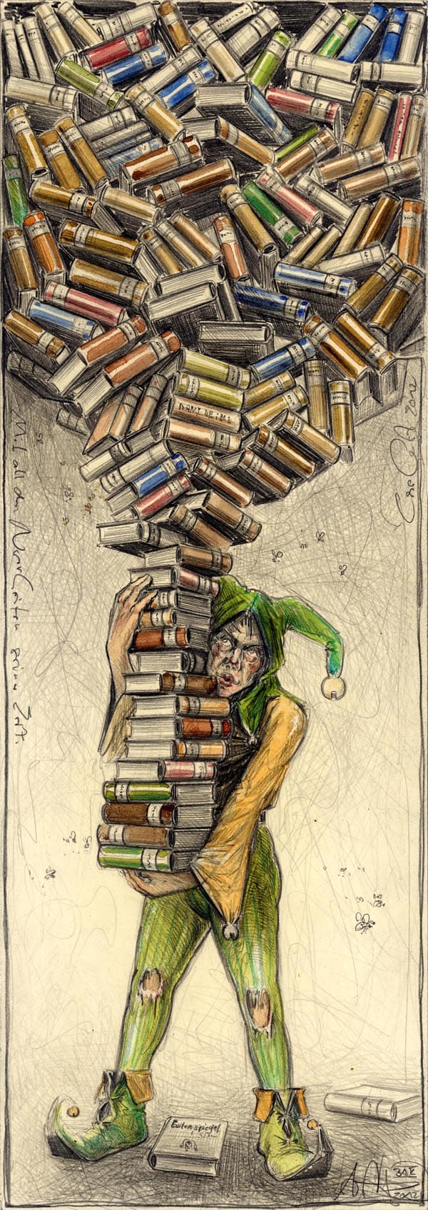 Mit all den Narrheiten seiner Zeit19. Juli 2015 Bleistift, Farbstift, AquarellWvz. 4805Format: 500 x 175 mmMai 2012 Vorheriger BeitragUnd dann werden sie doch nur gerupft (frei n. Goyas Capricho No. 19)Nächster BeitragIm Prinzip des Diogenes
