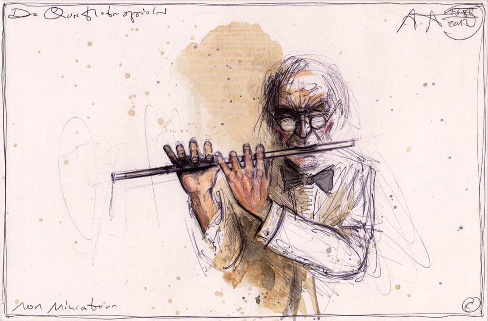 Der Querflötenspieler18. Juli 2015 Kugelschreiber, Farbstift, Aquarell, KaffeeWvz. 4930Format: 165 x 250 mmDezember 2013 Vorheriger BeitragDas Cello III.Nächster BeitragAuf den Weisheiten höchster Höhen