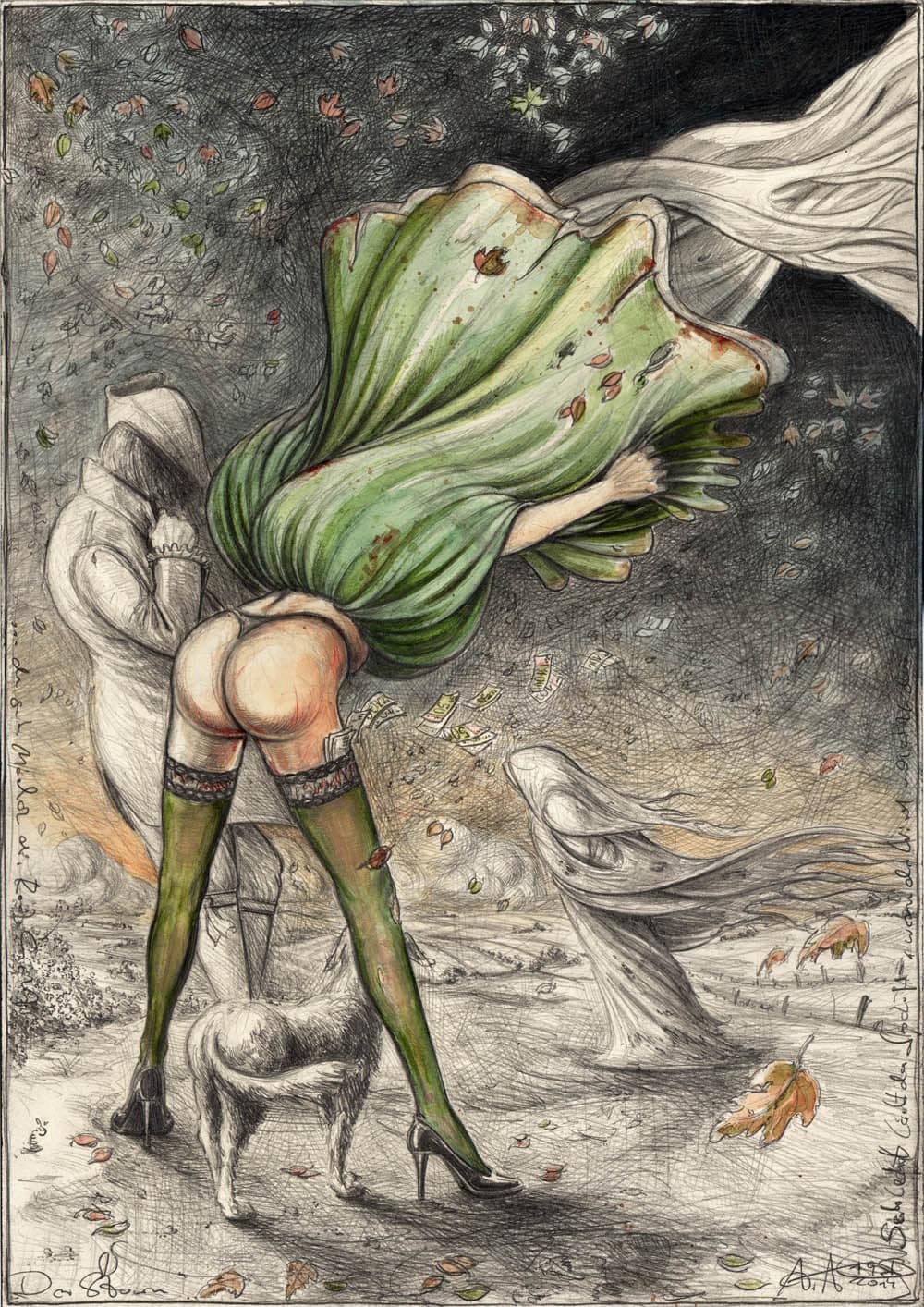 Der Sturm9. August 2015 "Schlecht läuft das Geschäft, wenn der Wind und nicht das Geld den guten Mädchen die Röcke hebt"Bleistift, Farbstift, AquarellWvz. 4935Format: 500 x 350 mmJanuar 2014 Vorheriger BeitragSchritt 2Nächster BeitragSchritt 1 (10.01)