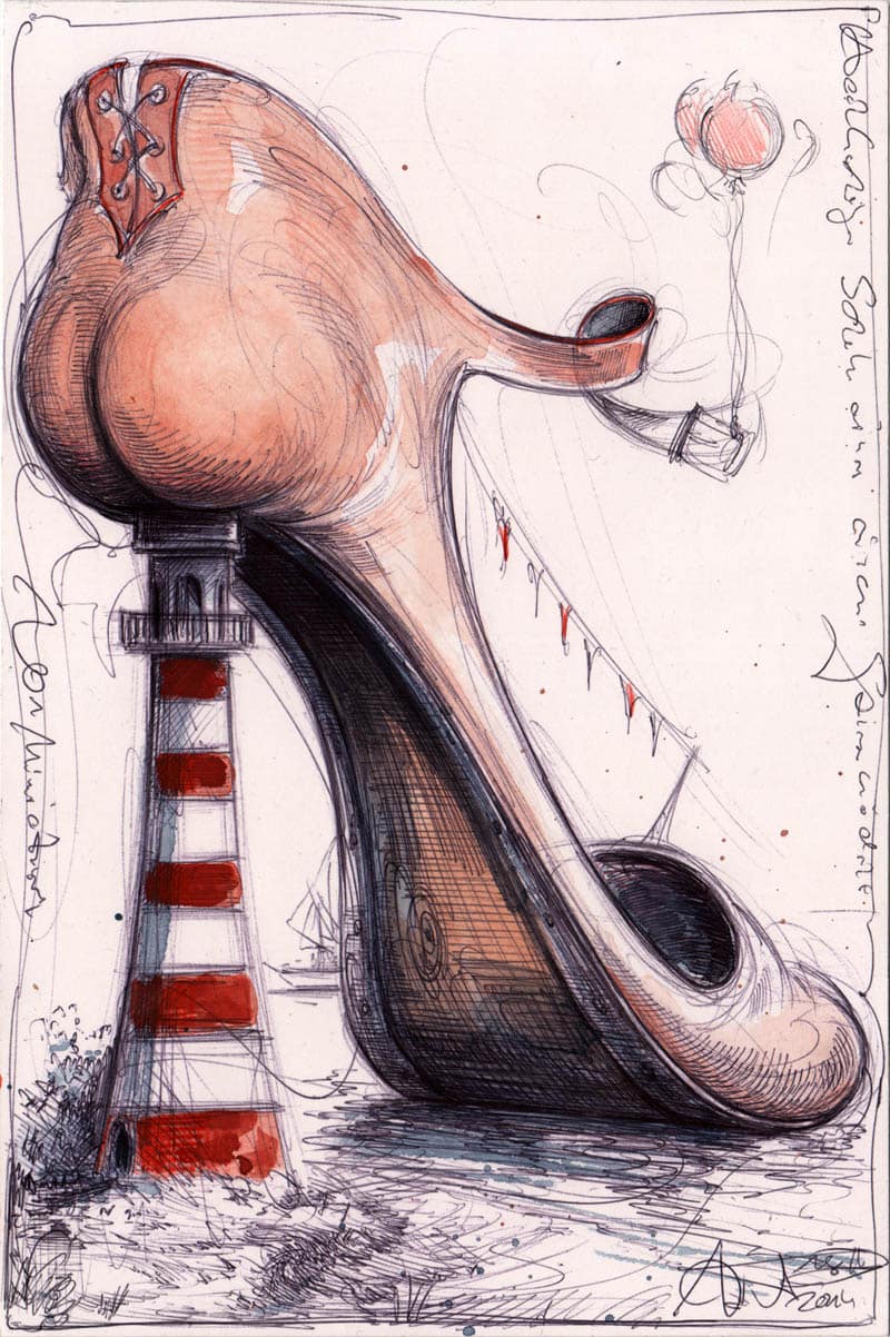 Hochhackiger Schuh eines einsamen Friesenmädels18. Juli 2015 Kugelschreiber, Farbstift, AquarellWvz. 4939Format: 250 x 165 mmFebruar 2014 Vorheriger BeitragMöhren-Schuhlette eines süßen HäschenNächster BeitragSchuh einer Lachsschnitte