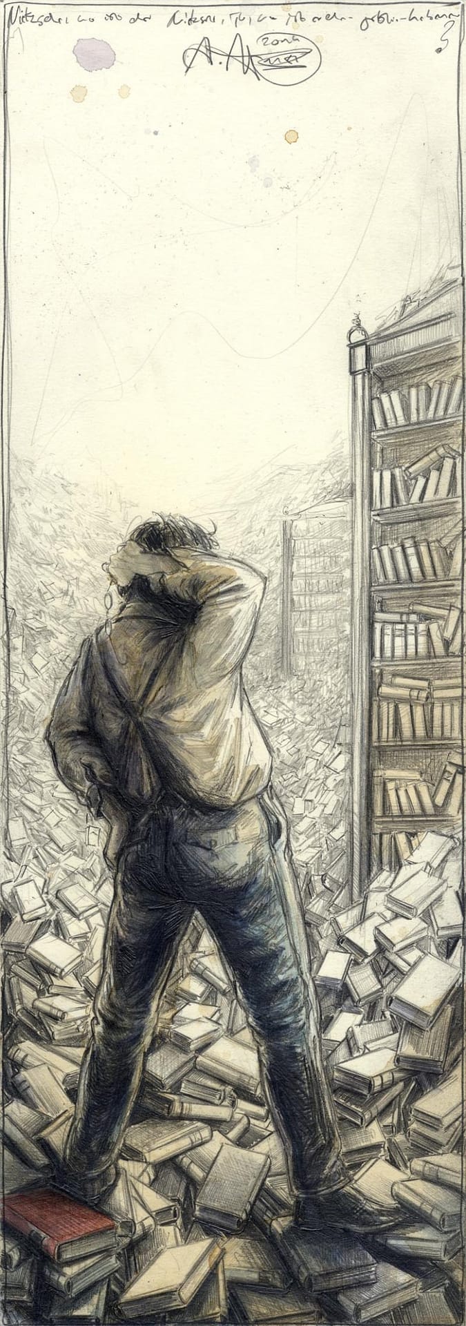 Nietzsche, wo ist der Nietzsche, ja, wo ist er denn geblie-hi-ben18. Juli 2015 Bleistift, Farbstift, AquarellWvz. 4980Format: 500 x 175 mmNovember 2014 Vorheriger BeitragDer kleine Strich, am Ende der StraßeNächster BeitragStimmungs- oder Meinungswechsel – Aber wer weiß das schon so genau?