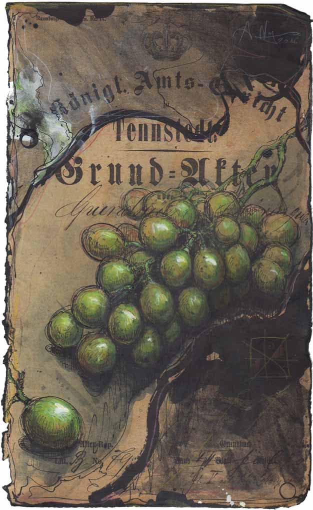 Trauben im Dunkel28. Dezember 201628. Dezember 2016 Federzeichnung, Farbstift, AquarellWvz. 5051Format: 355 x 320 mmDezember 2016 Vorheriger BeitragSternfrucht und KakiNächster BeitragArtig, aber nicht schockiert