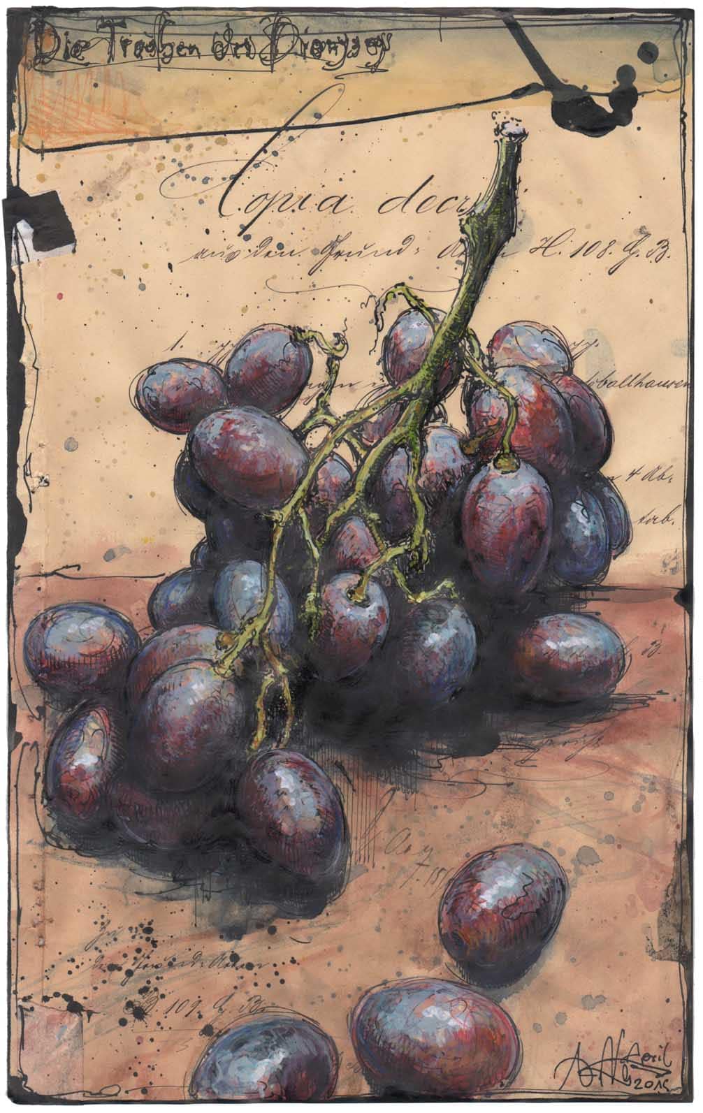 Die Trauben des Dionysos13. April 201913. April 2019 Federzeichnung, Farbstift, AquarellWvz. 5150Format: 330 x 205 mmApril 2019 Vorheriger BeitragDer Duft von Lauchzwiebeln am MorgenNächster BeitragAperpol Spritz: In den Farben des vierten Sommers