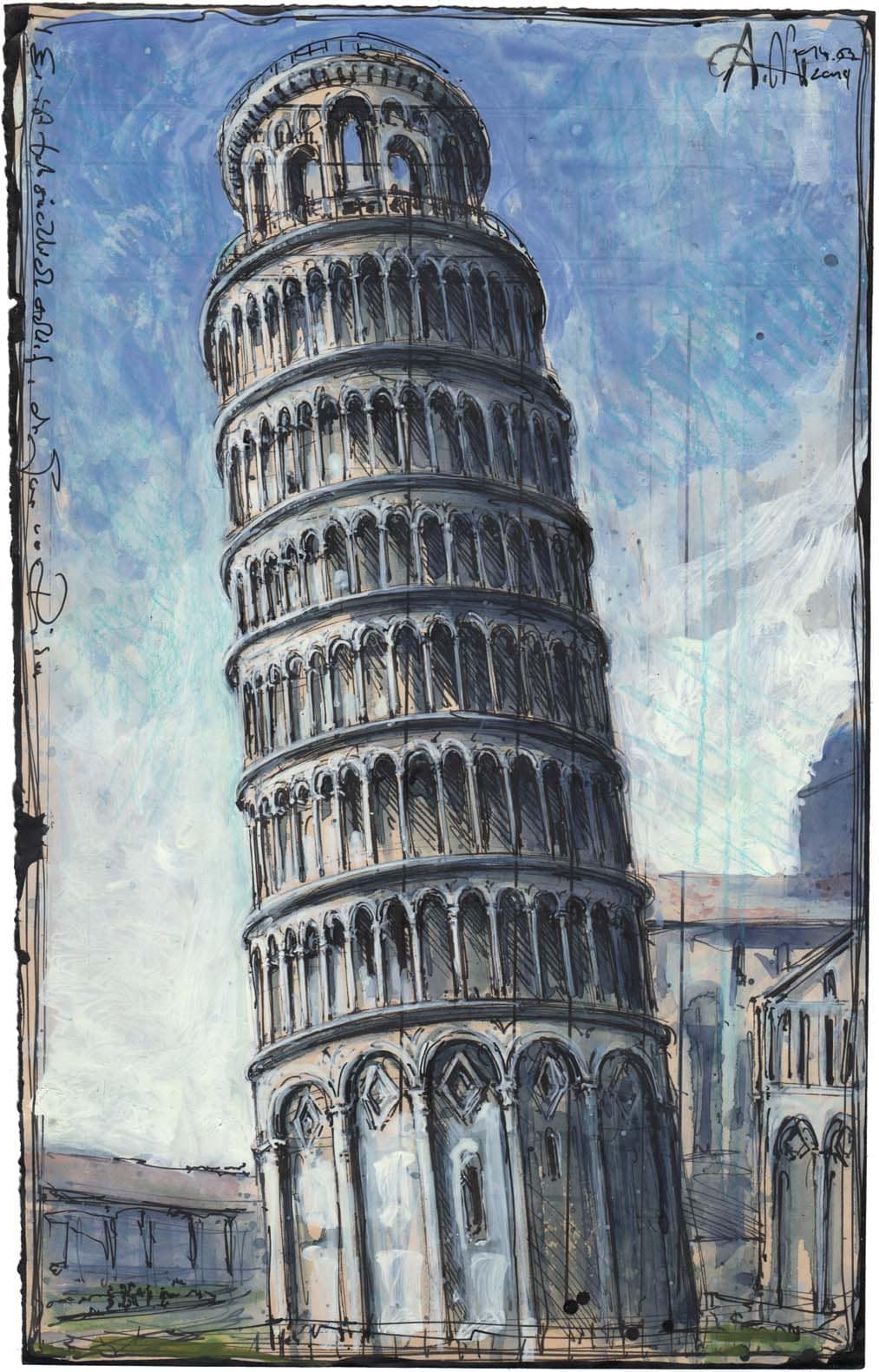 Er ist tatsächlich schief, der Turm von Pisa15. März 201915. März 2019 Federzeichnung, Farbstift, Aquarell330 x 210 mmDvz. 113014.03.2019 Vorheriger BeitragNotre DameNächster BeitragFrauenkirche Dresden