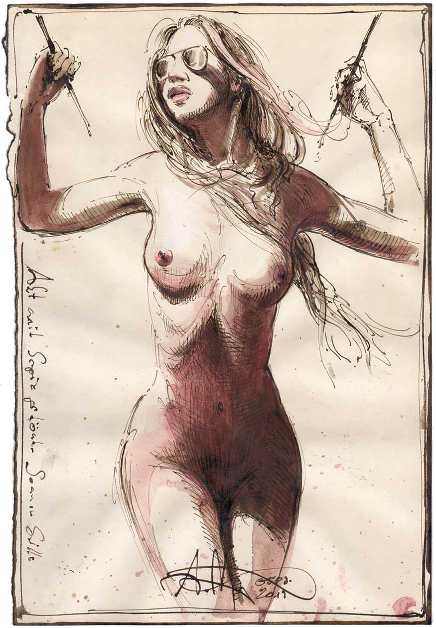Akt mit Sepia getönter Sonnenbrille22. August 201924. August 2019 Federzeichnung, Aquarell, Farbstift260 x 180 mmDvz. 121104.08.2019 Vorheriger BeitragAkt vor Sepia farbenen FelsenNächster BeitragRückenakt in Seipa-Grün