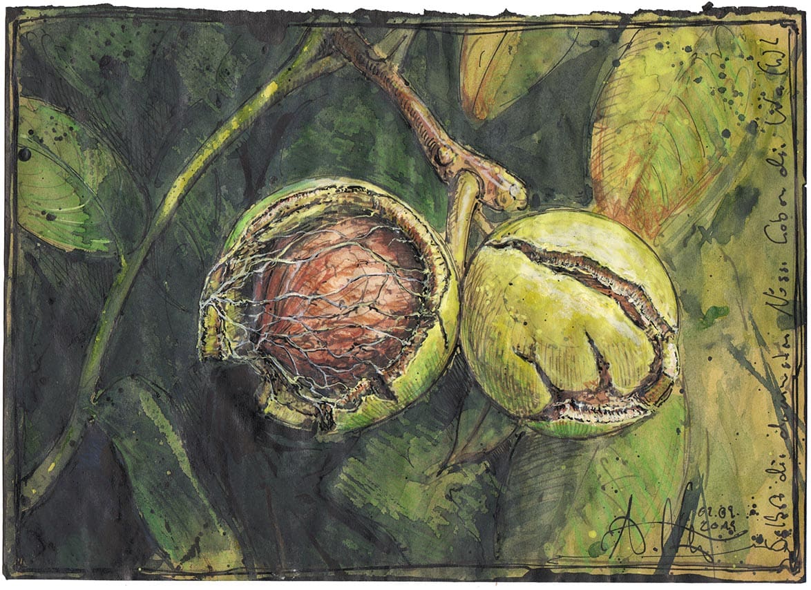 Federzeichnung, Farbstift, Aquarell