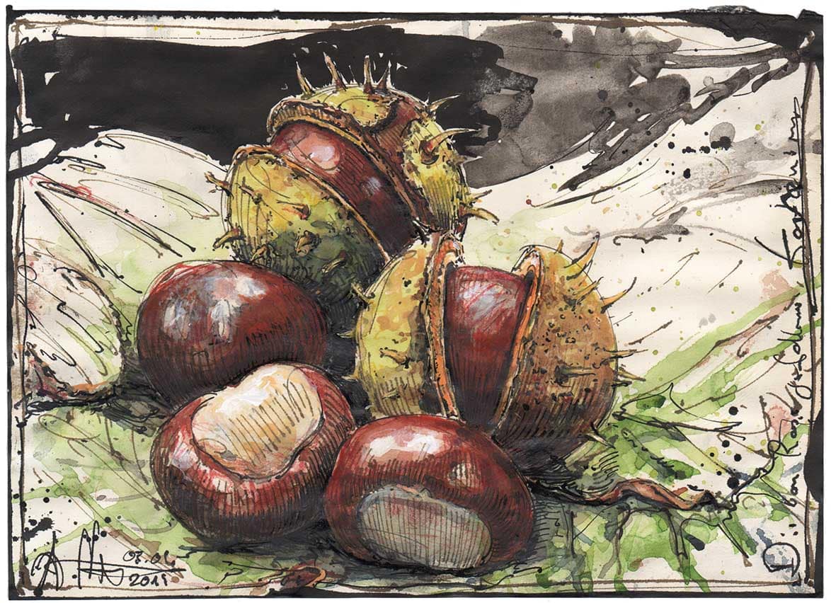 Die vom Ross gefallenen Kastanien12. September 201916. September 2019 Federzeichnung, Farbstift, AquarellDvz. 1222Format: 175 x 245 mm05.09.2019 Vorheriger BeitragJenen, mit denen nicht gut essen istNächster BeitragEs geschah am helllichten Tag